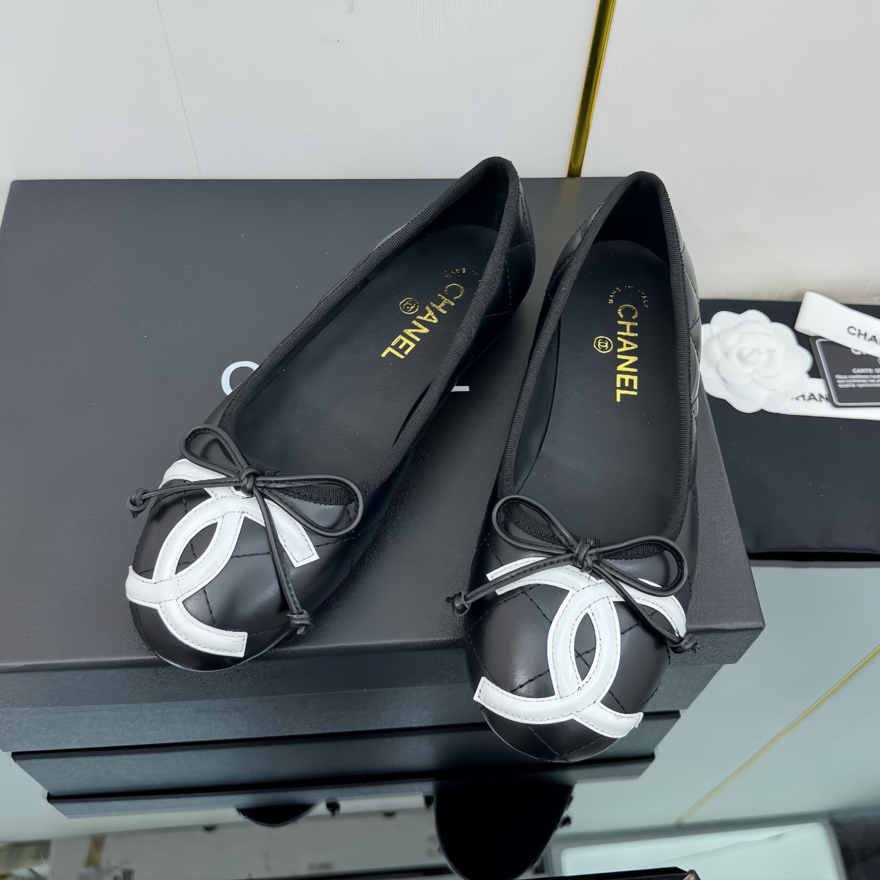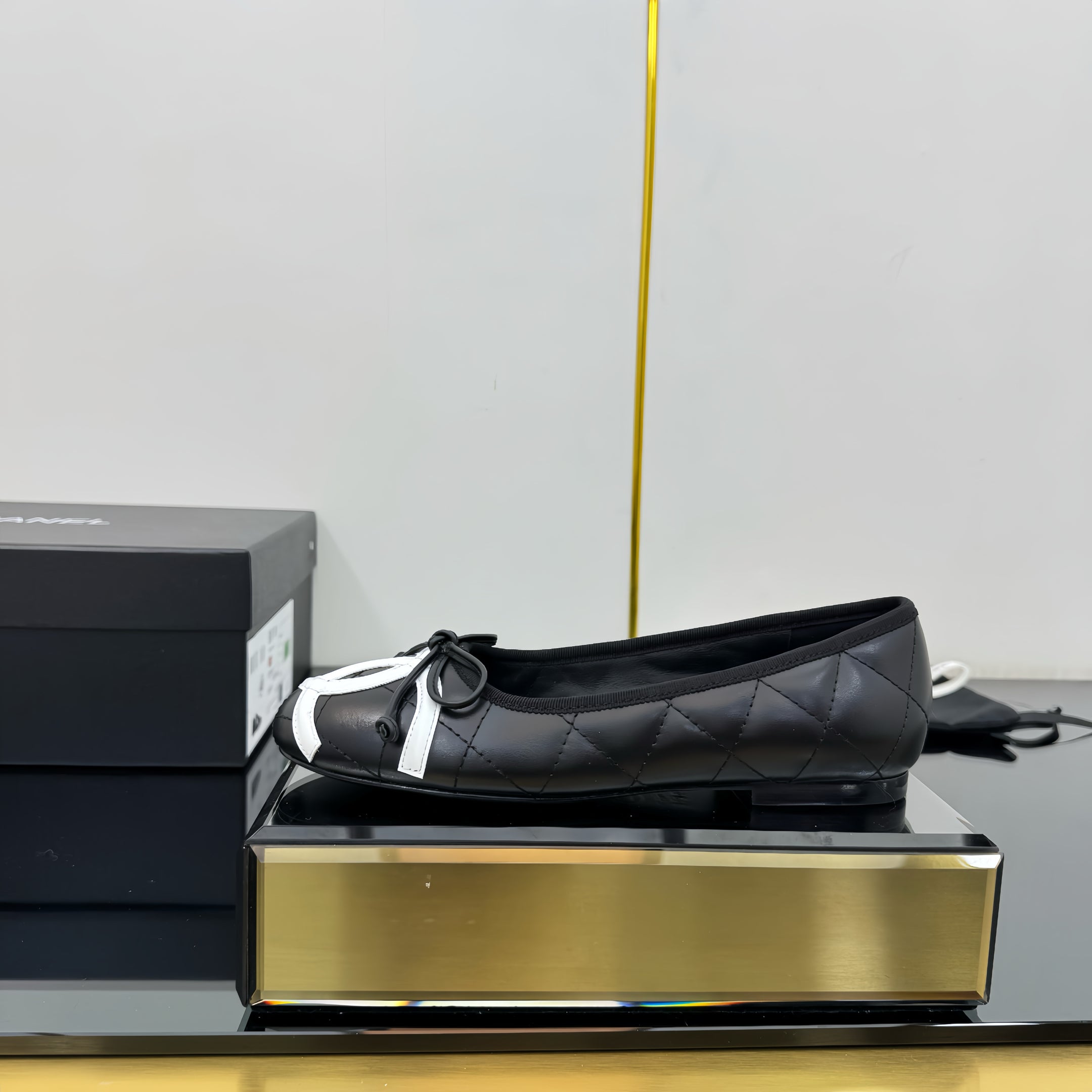 CC 25 Cambon Ballet Flat Black White Quilted Calfskin
