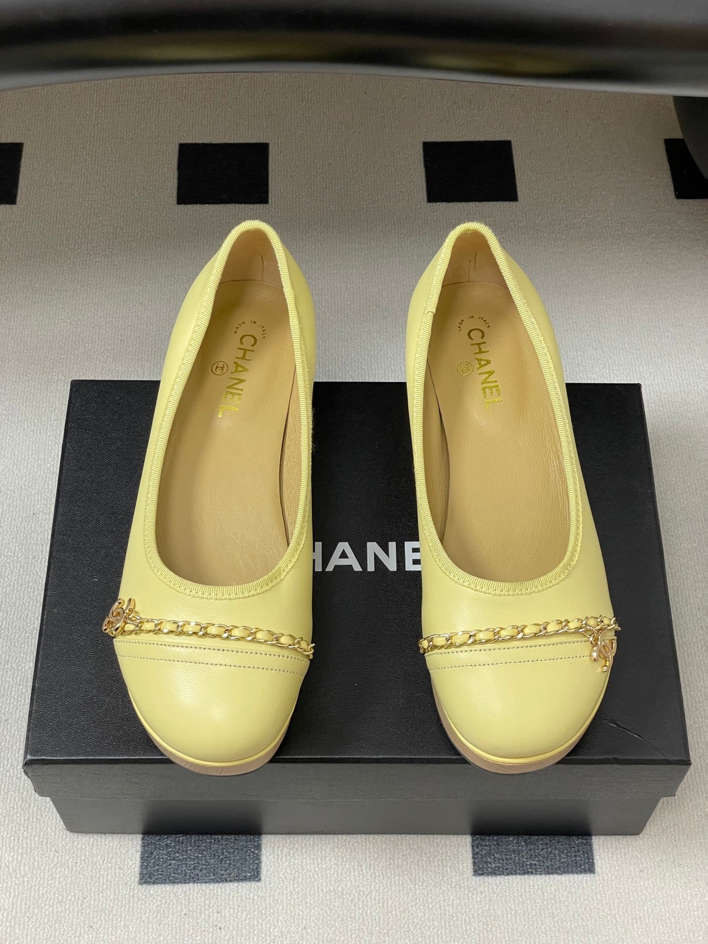 CC 25A Chain CC Thick-Soled Shoe 40mm Pastel Yellow Sheepskin 393952