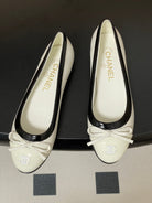 CC 25A Small Bow Ballet Flats White Mix Black Sheepskin 393966