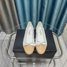 CC 25P Ballet Flat White Beige Quilted Calfskin