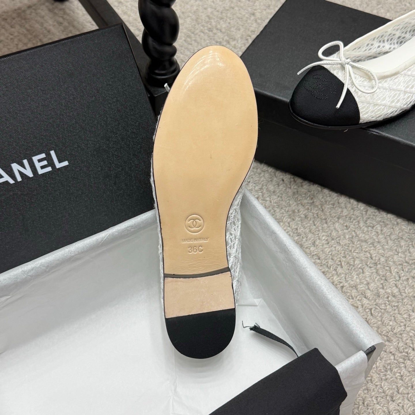 CC 25p Ballet Flat White Cotton Mesh Fabric Grosgrain
