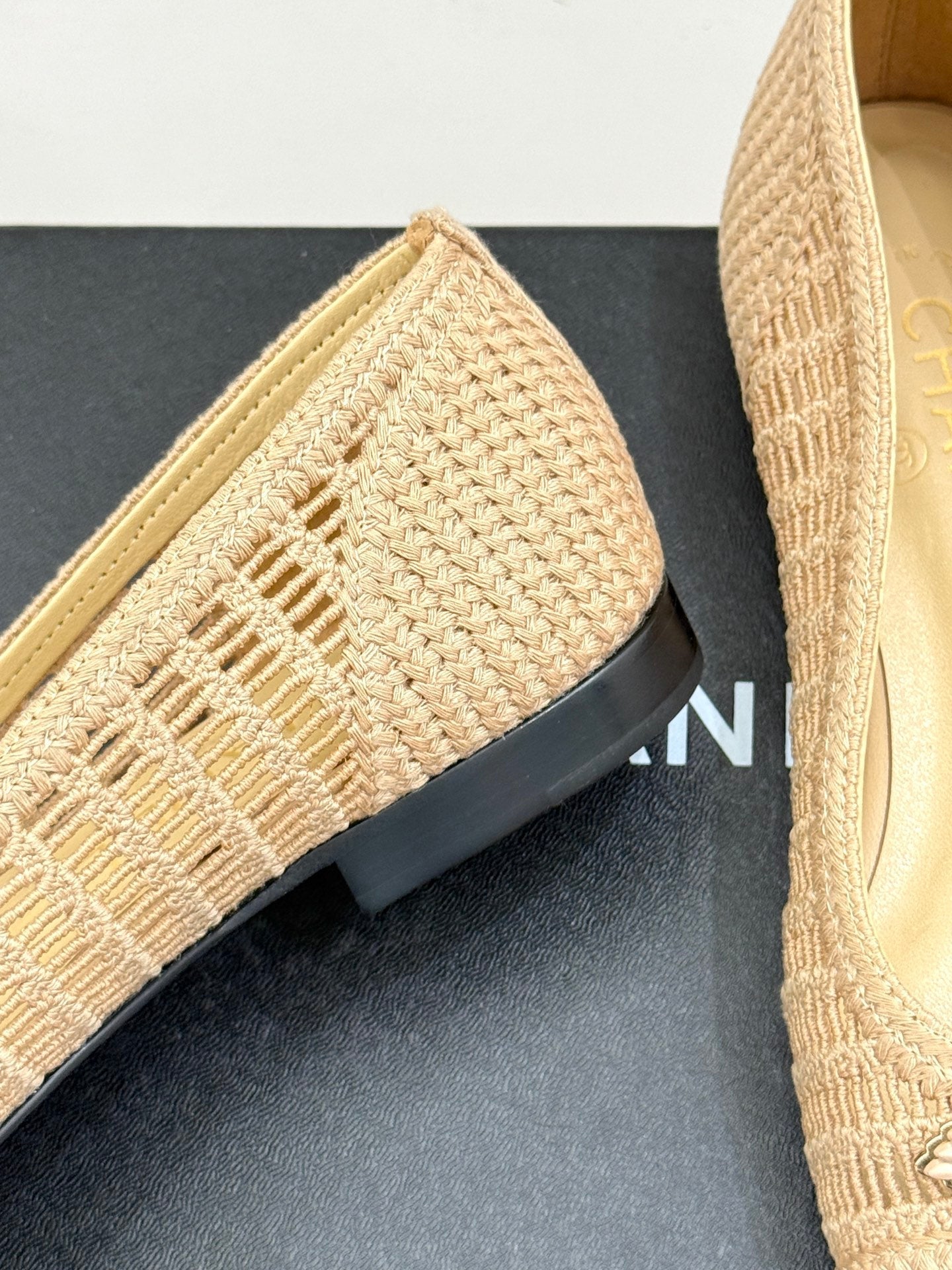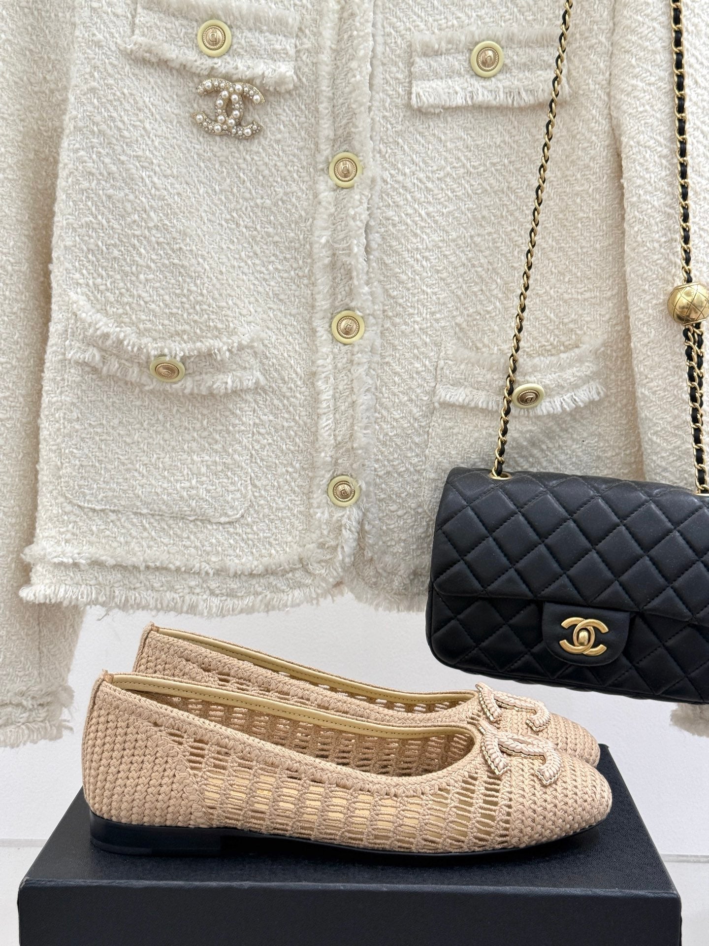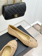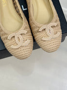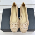 CC 25P Hollow Double C Ballet Flats 15mm Beige Raffia 265642
