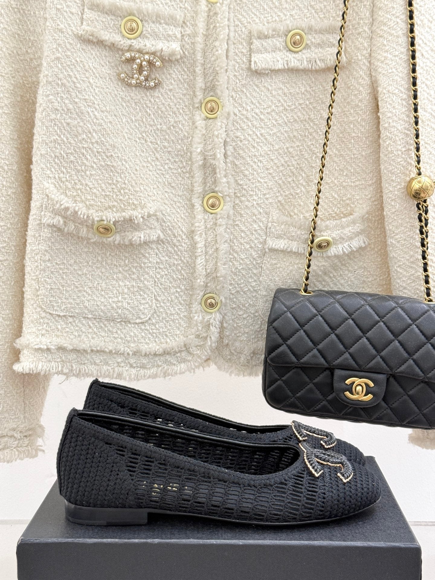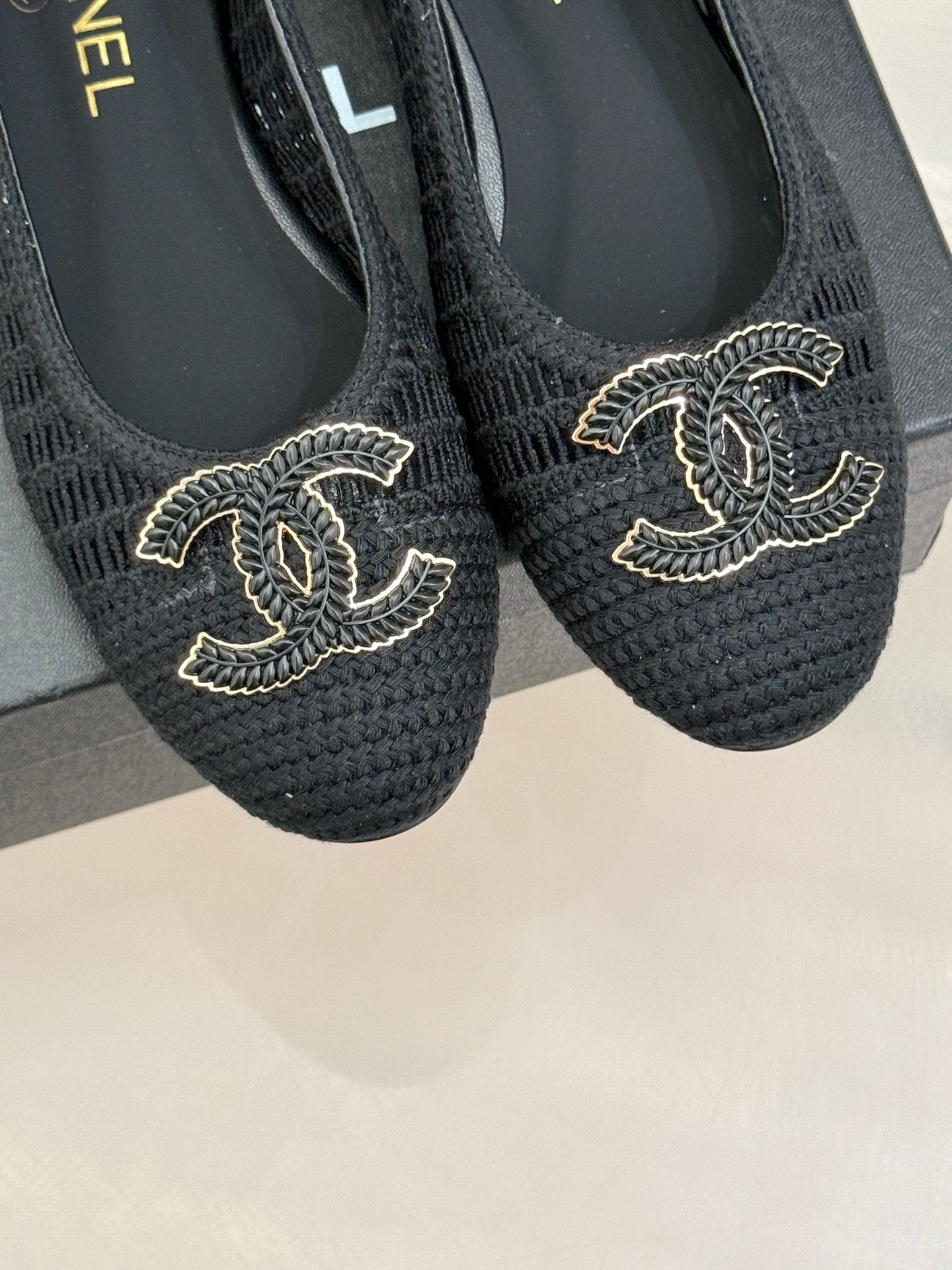 CC 25P Hollow Double C Ballet Flats 15mm Black Raffia 265643