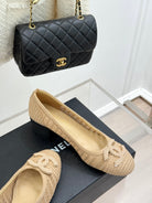 CC 25P Hollow Double C Ballet Flats 50mm Beige Raffia 265638