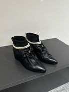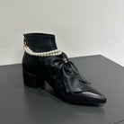 CC Ankle Boots Black Bow Tie Cowhide