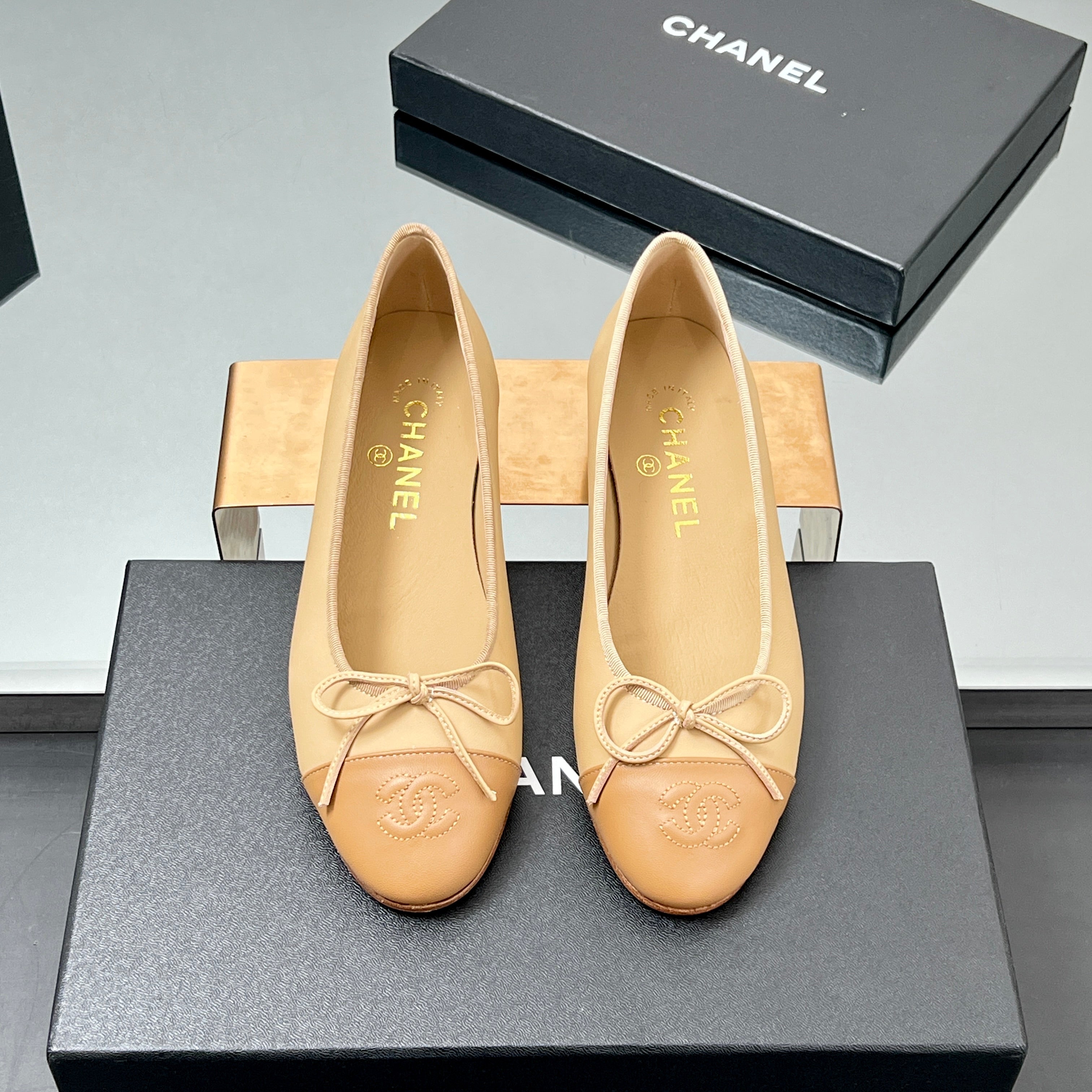 CC Ballet Flats 20mm Beige Sheepskin Mix Gold Pattern 266678