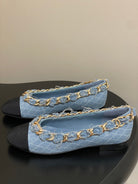 Chanel 25A Ballet Flats Big Chain Double C Blue Denim Sheepskin 393817