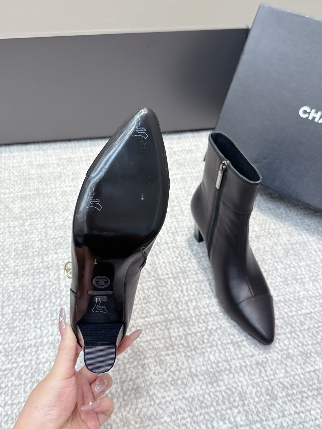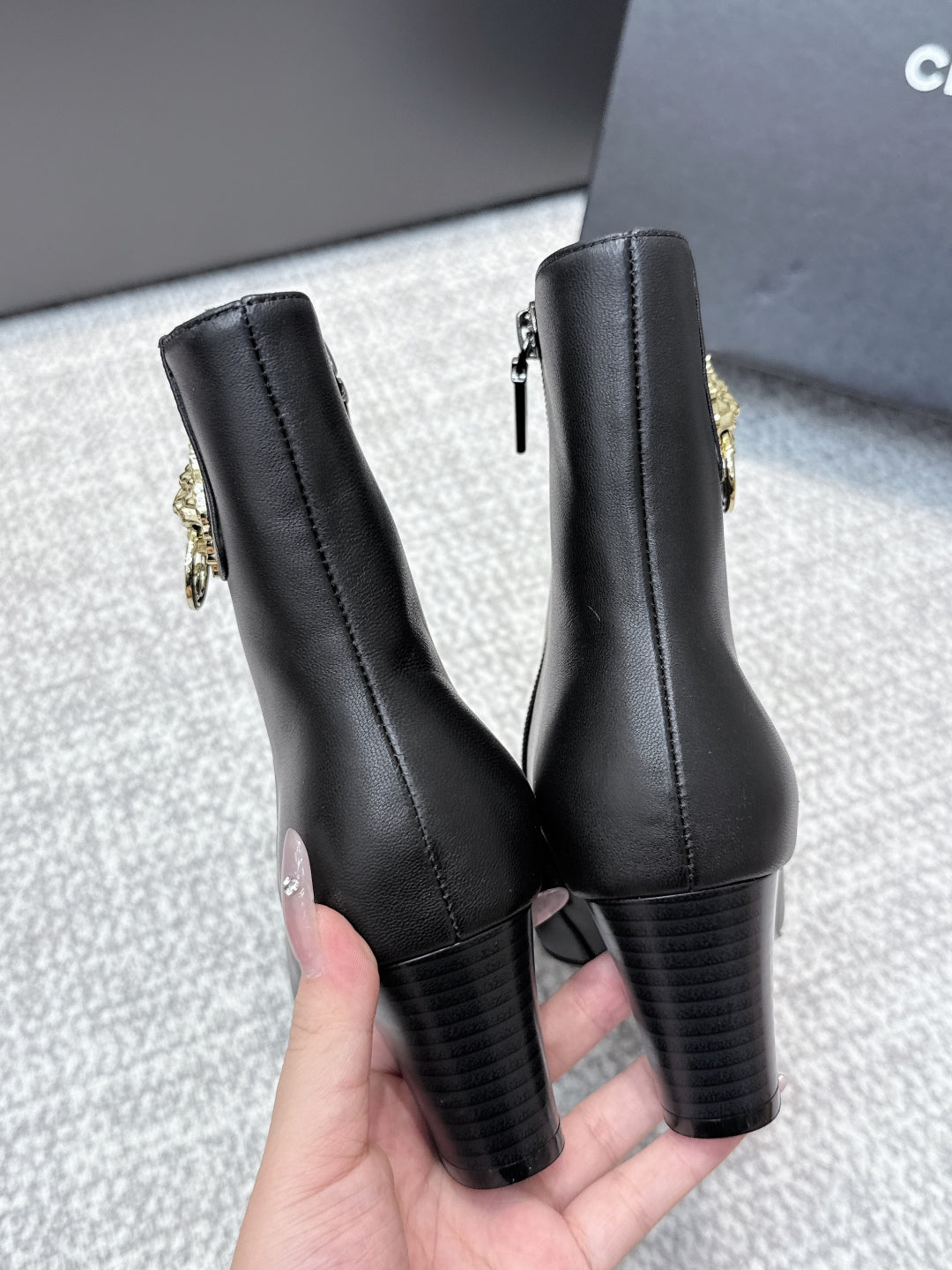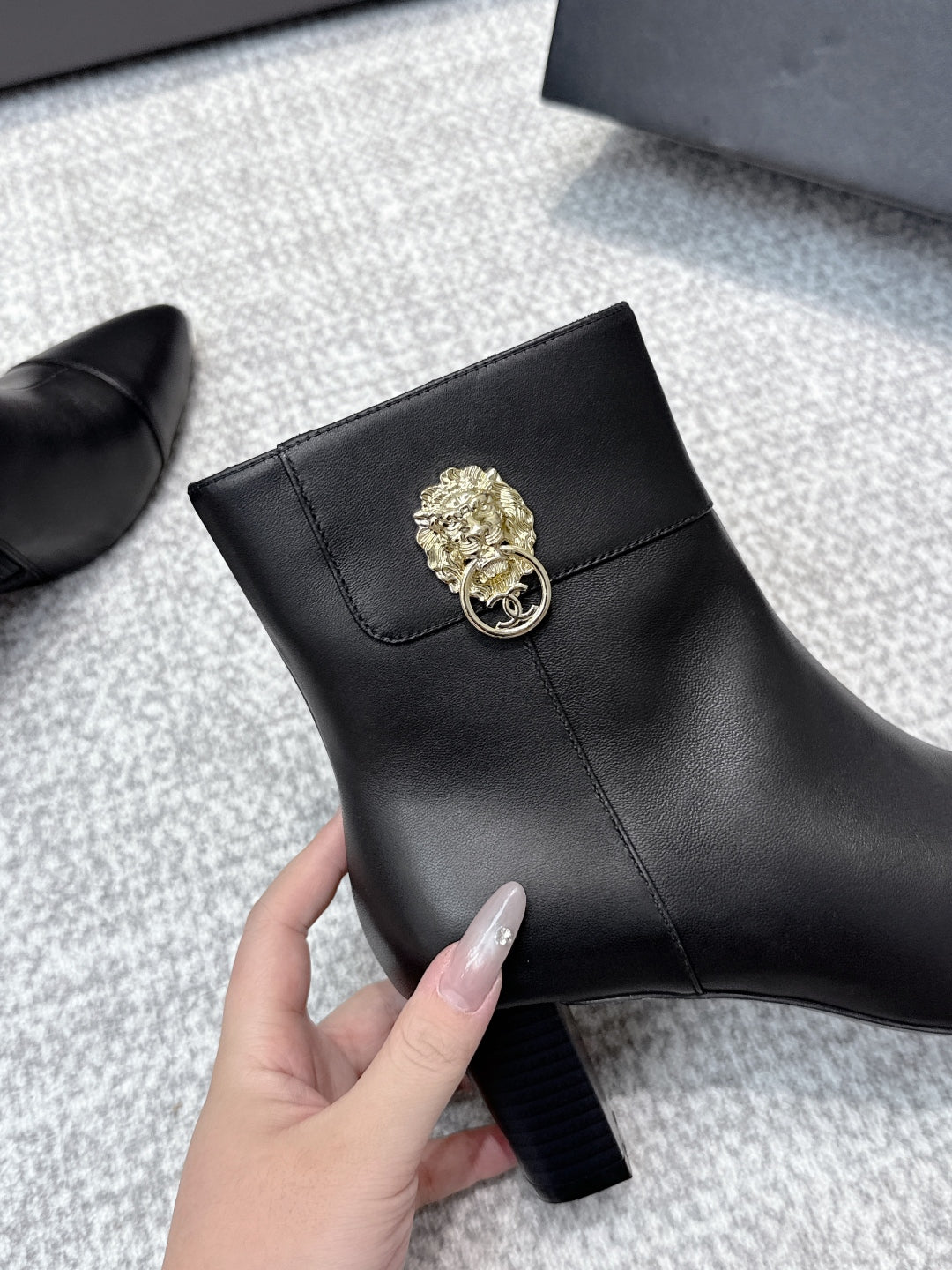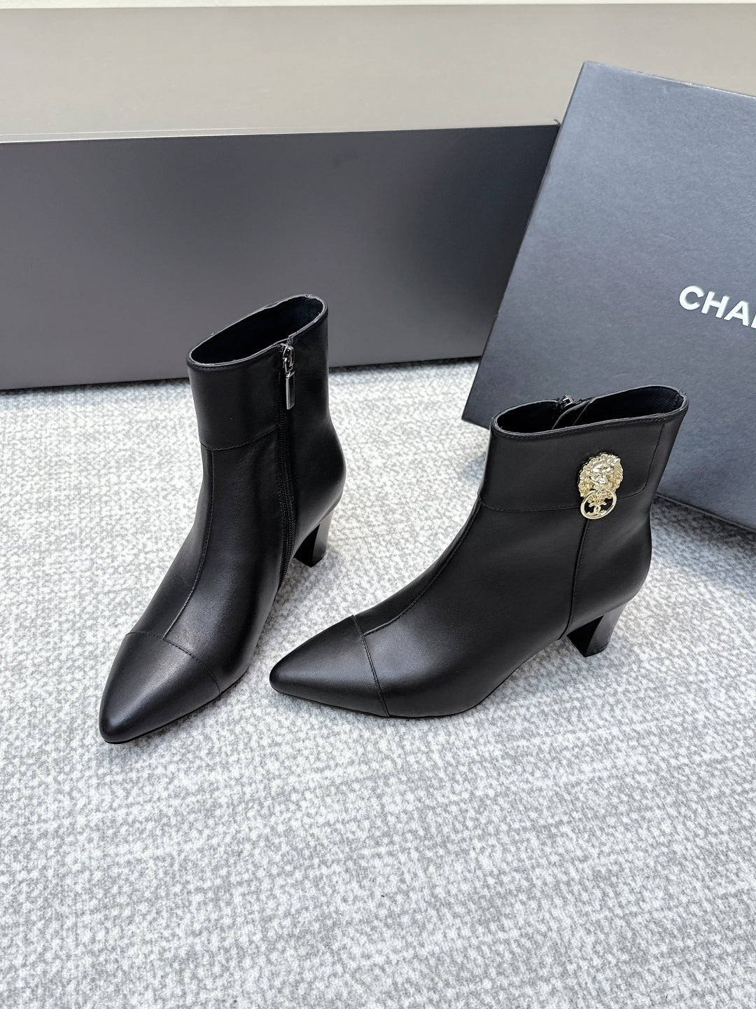 CC 2025s Lion Pointed Toe Ankle Boots 50mm Black Sheepskin 461623
