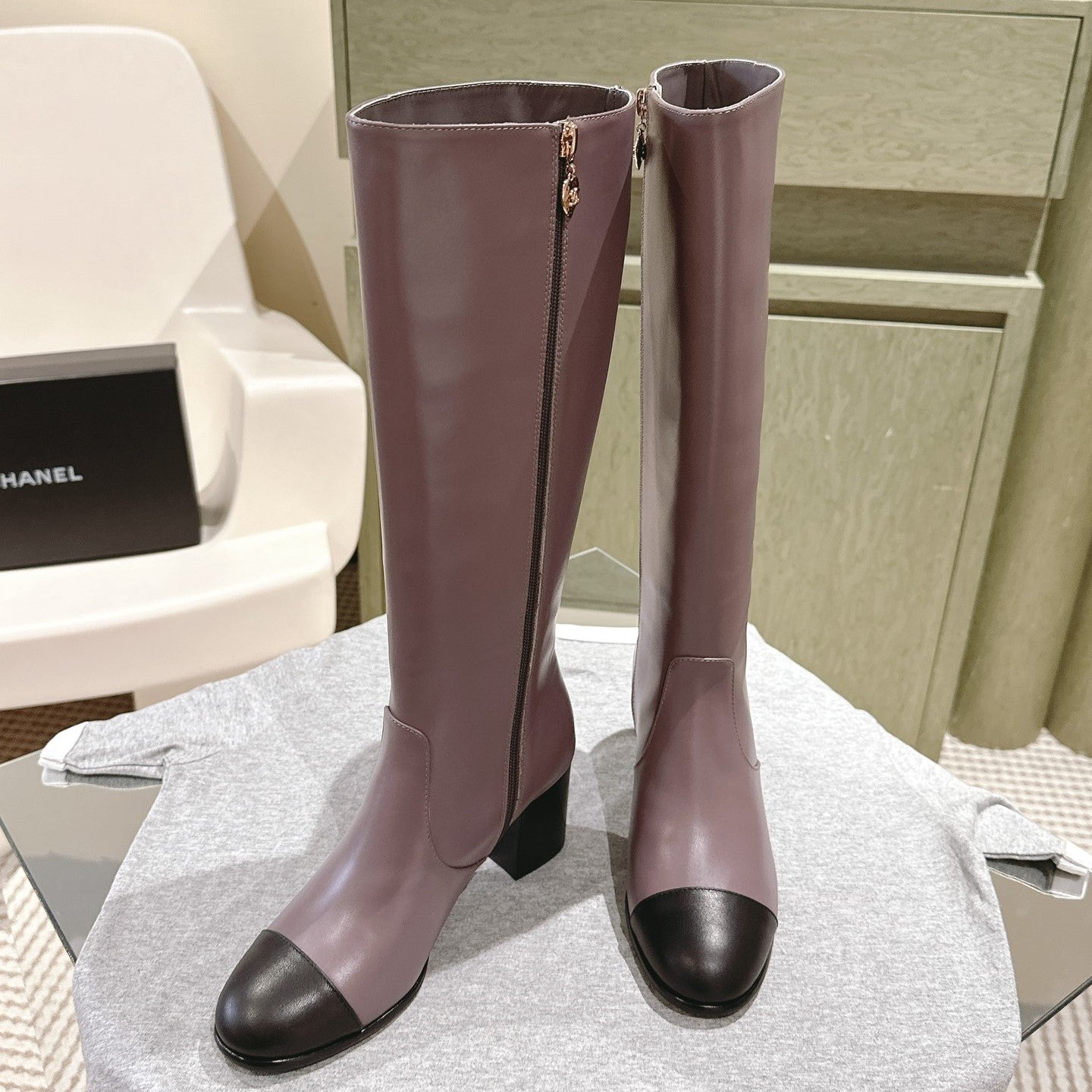 CC 24 FW Knee-High Boots 70mm Dusty Purple Black Cowhide 447189