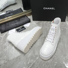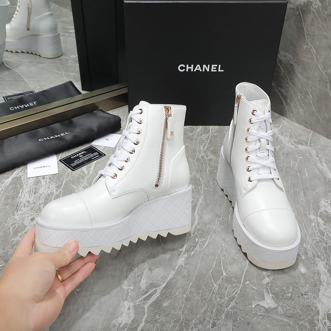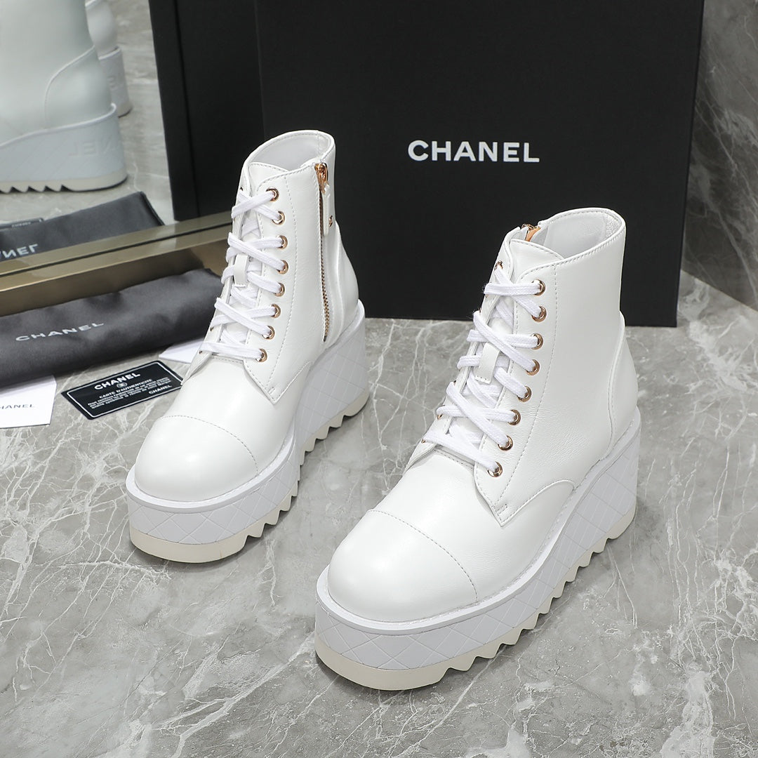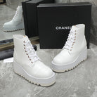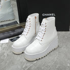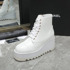 CC 24 Interlocking Logo Combat Boots 100mm White Lambskin 432650