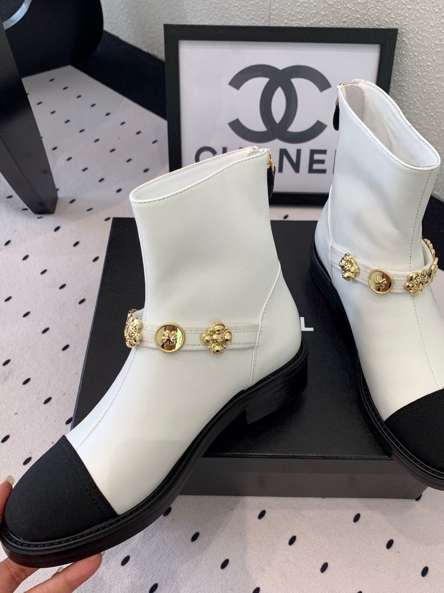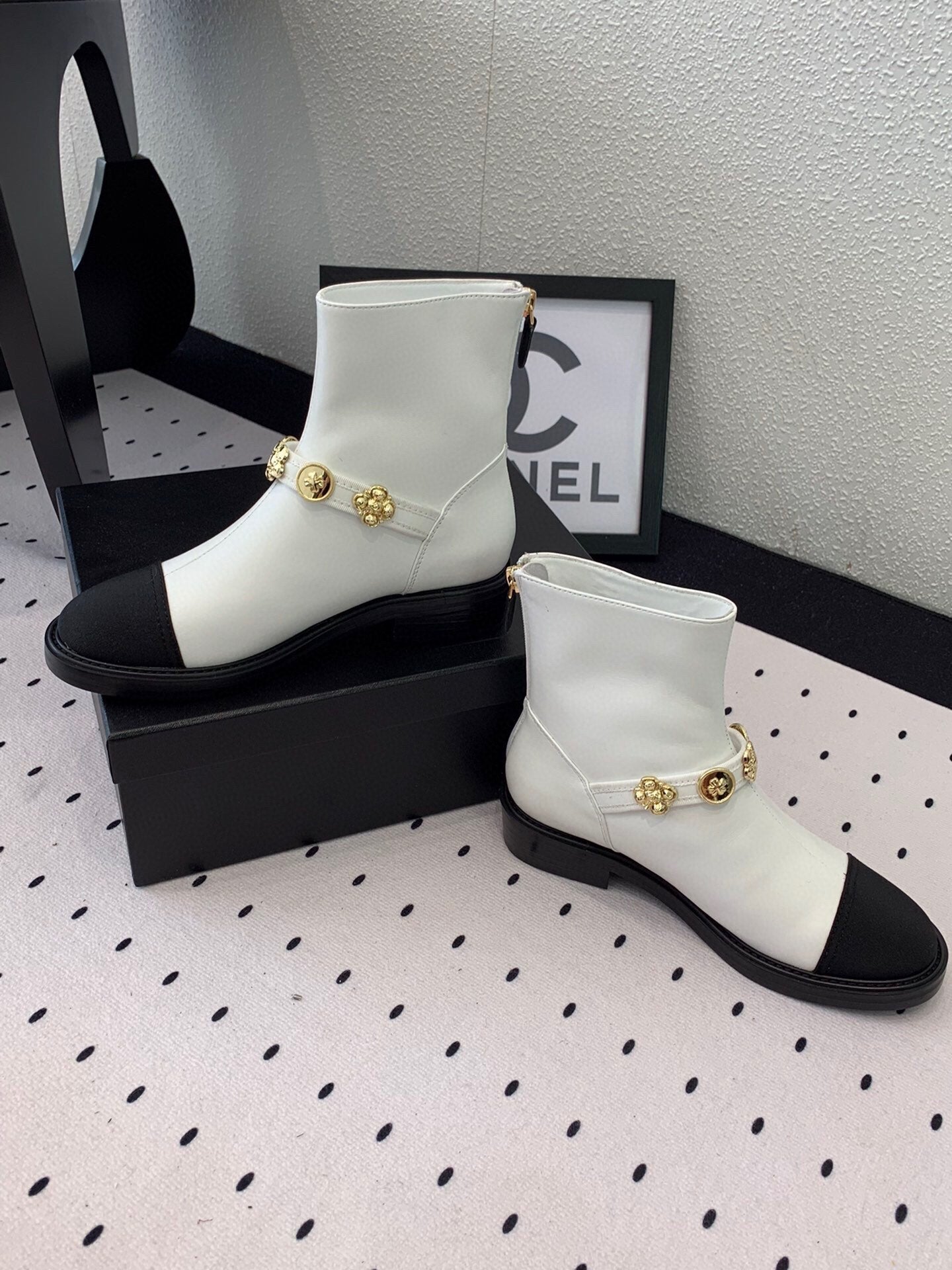 CC 24 Mold GHW Classic Ankle Boots 30mm Black White Sheepskin 432511