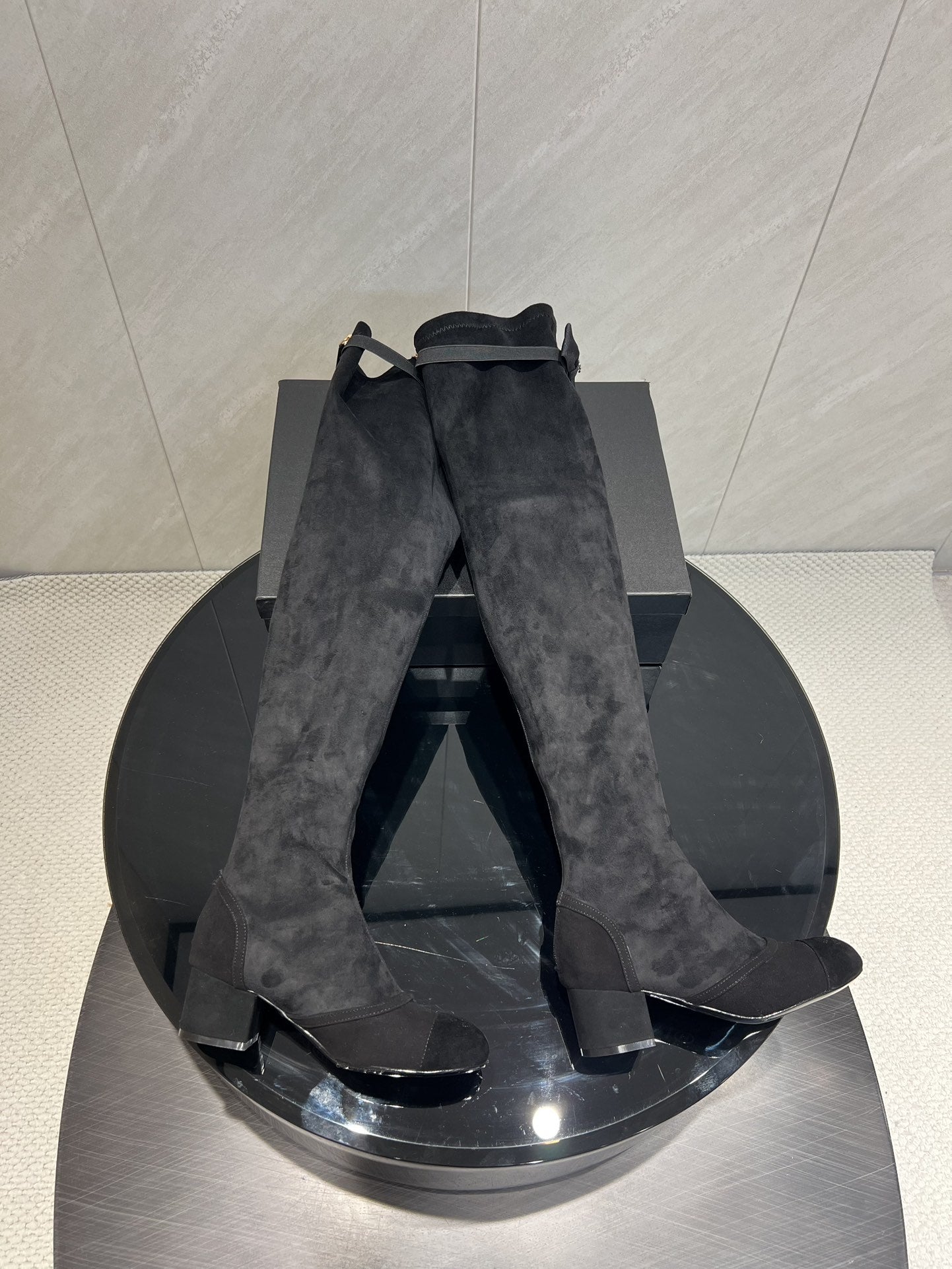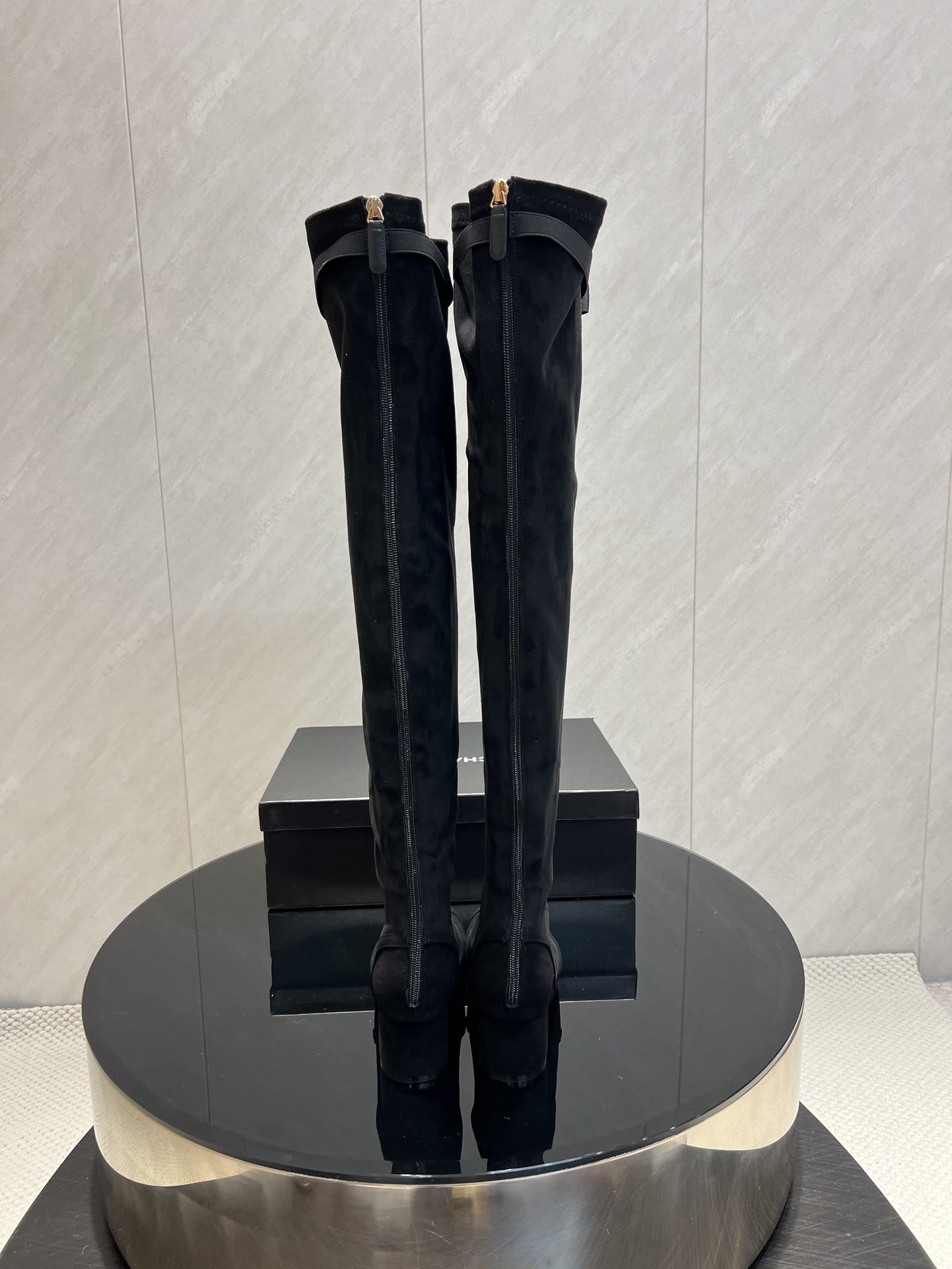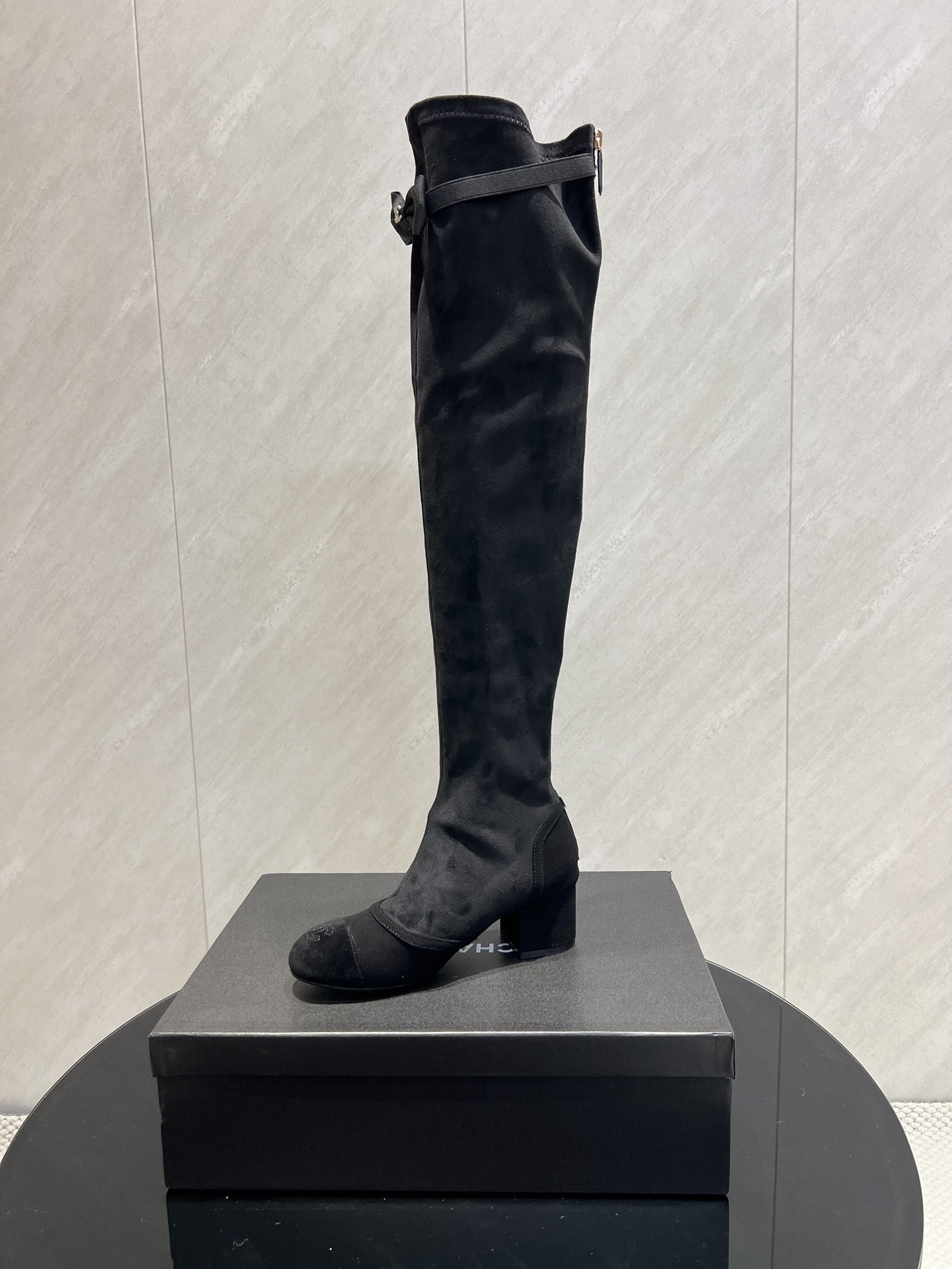 CC 25 Bowknot Stretch Boots Black Velvet Sheepskin 516421