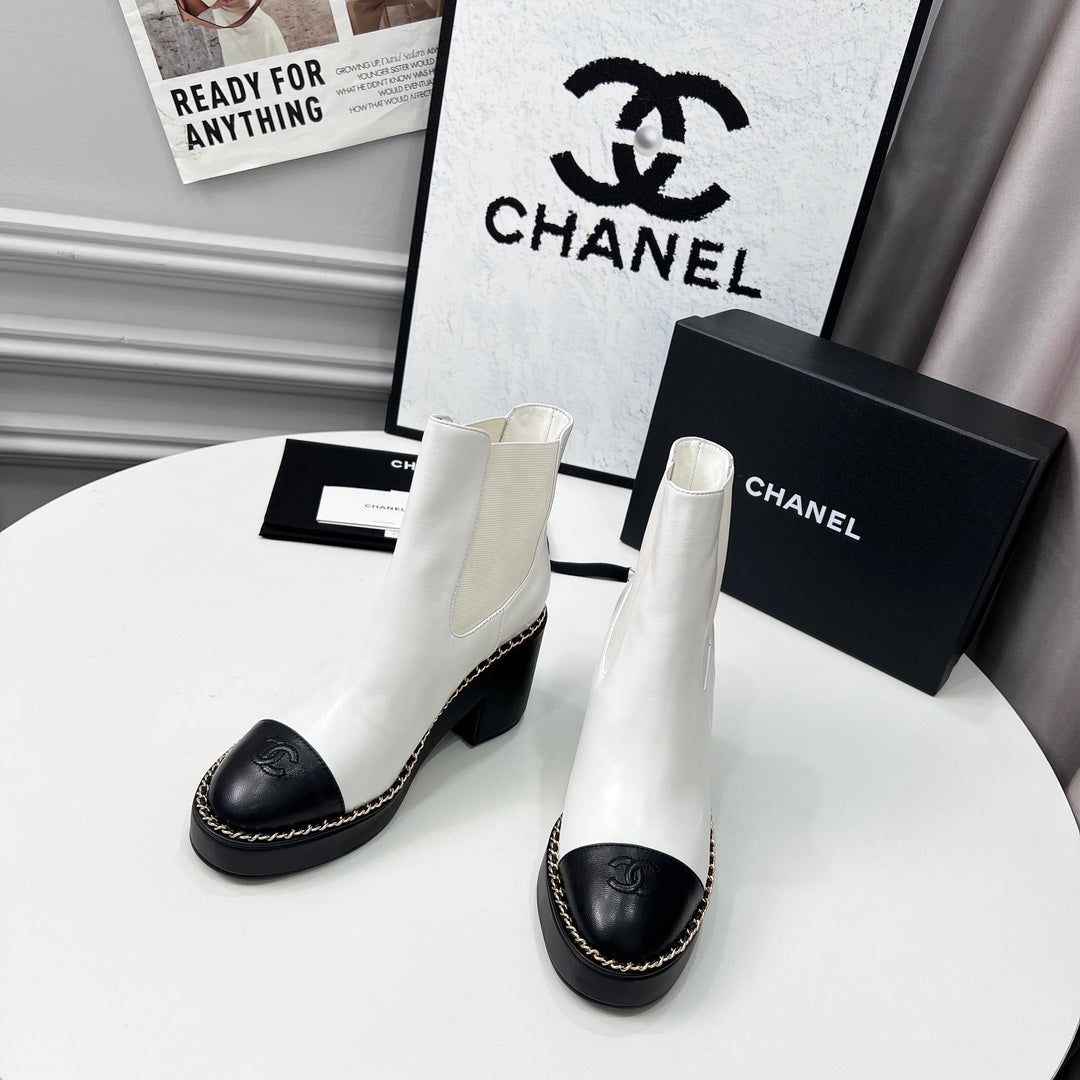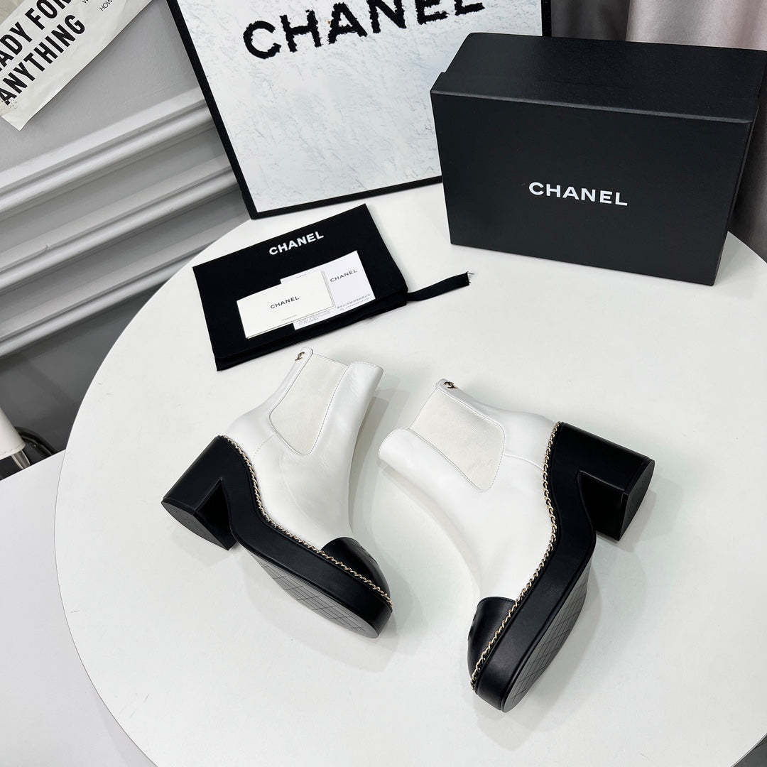 CC 25 Chelsea Ankle Boots With Chain 85mm White Black Sheepskin 374033