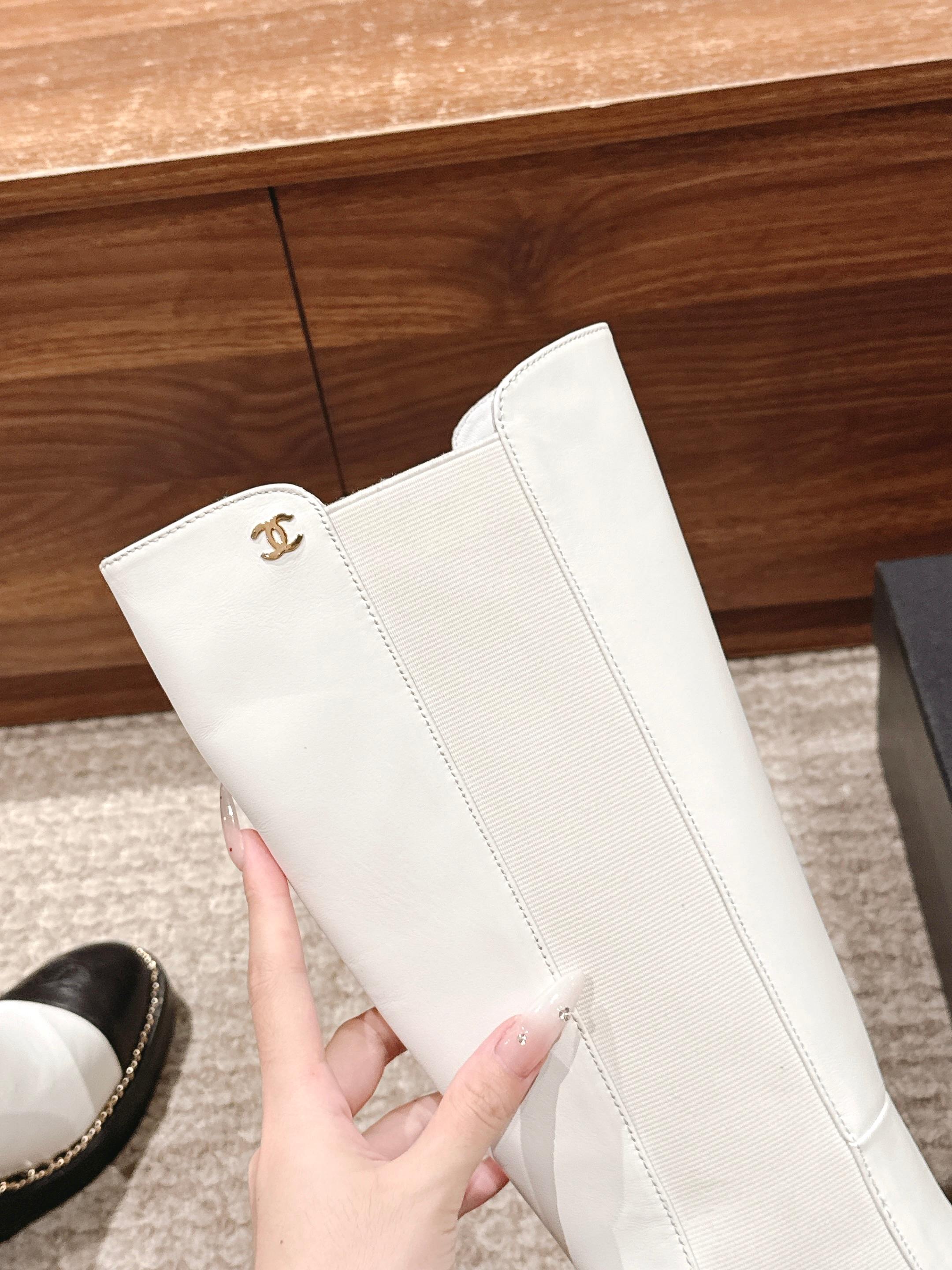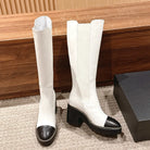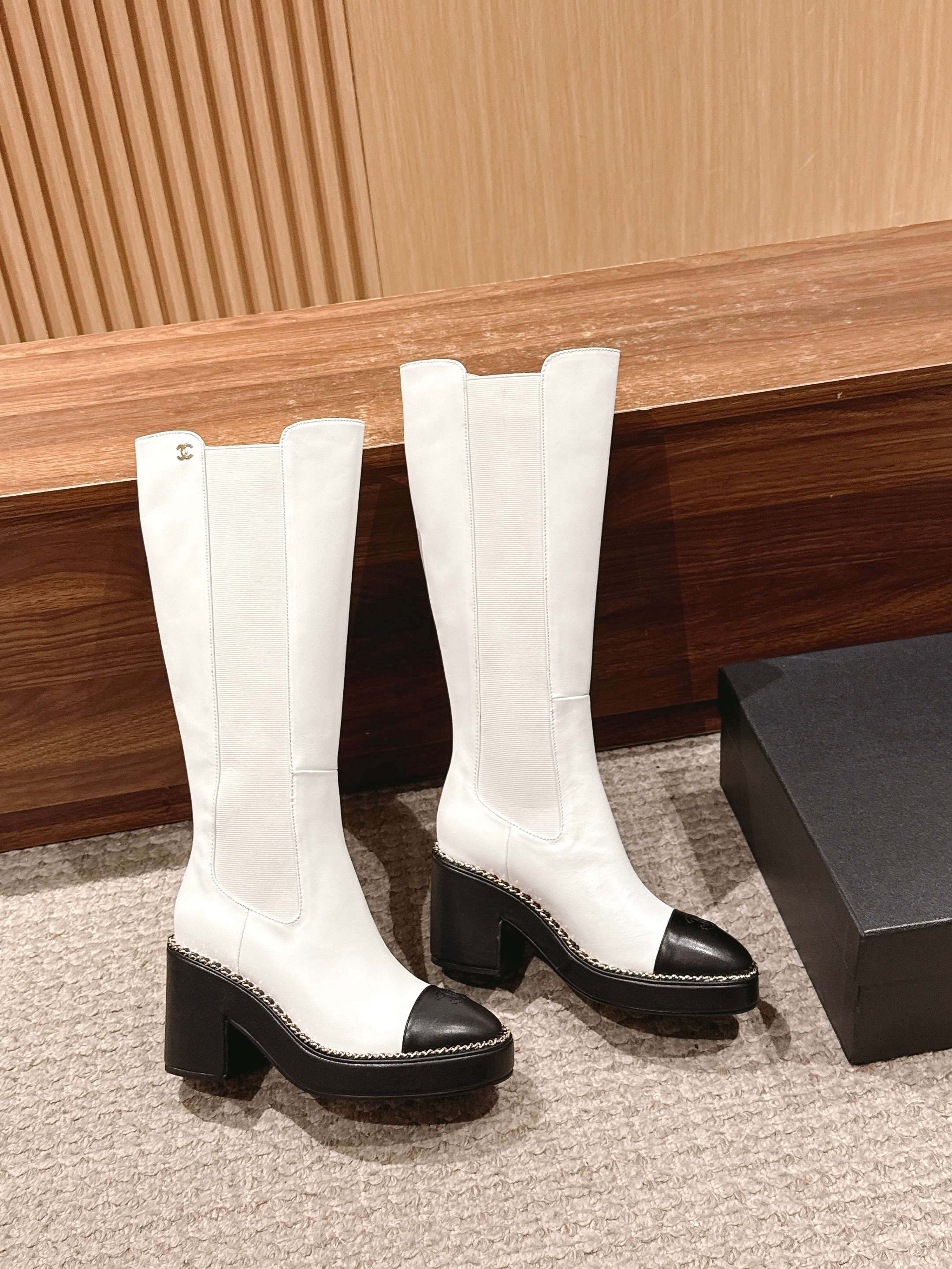 CC 25 Chelsea High Boots With Chain 85mm Black White Calfskin 428215