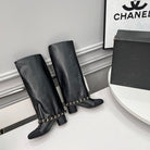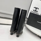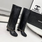 CC 25 High Boots With Chain 55mm Black Cowhide Grosgrain 374026