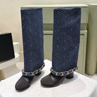 CC 25 Long Boot Navy Blue Black Denim Fabric Calfskin 515273