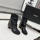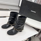 CC 25 Short Boots With Chain 55mm Black Cowhide Grosgrain 374029