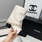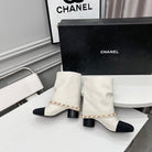CC 25 Short Boots With Chain 55mm White Cowhide Black Grosgrain 374028