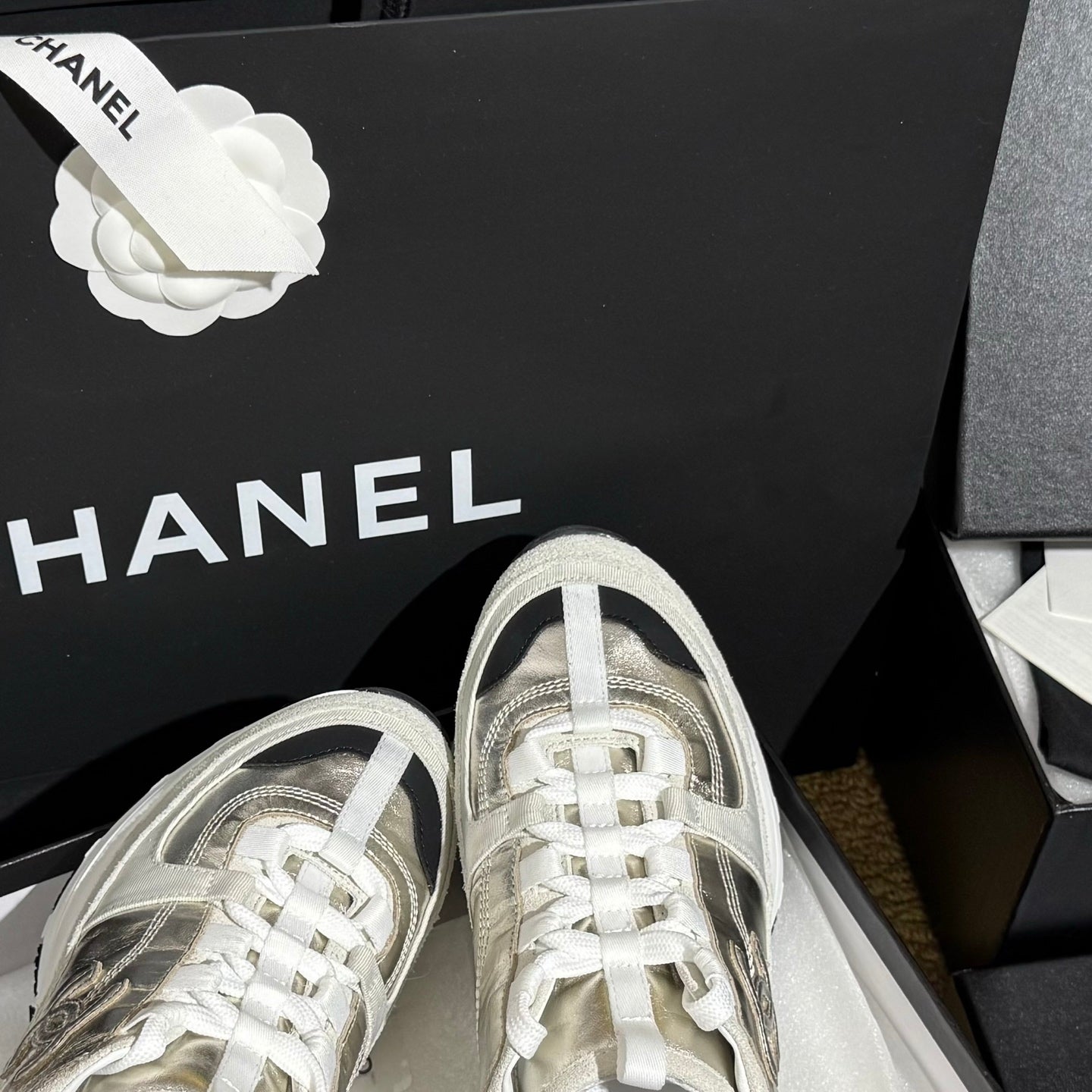 CC 25A Trainers Light Gold Black Cream Laminated Calfskin And Suede Calfskin 352120