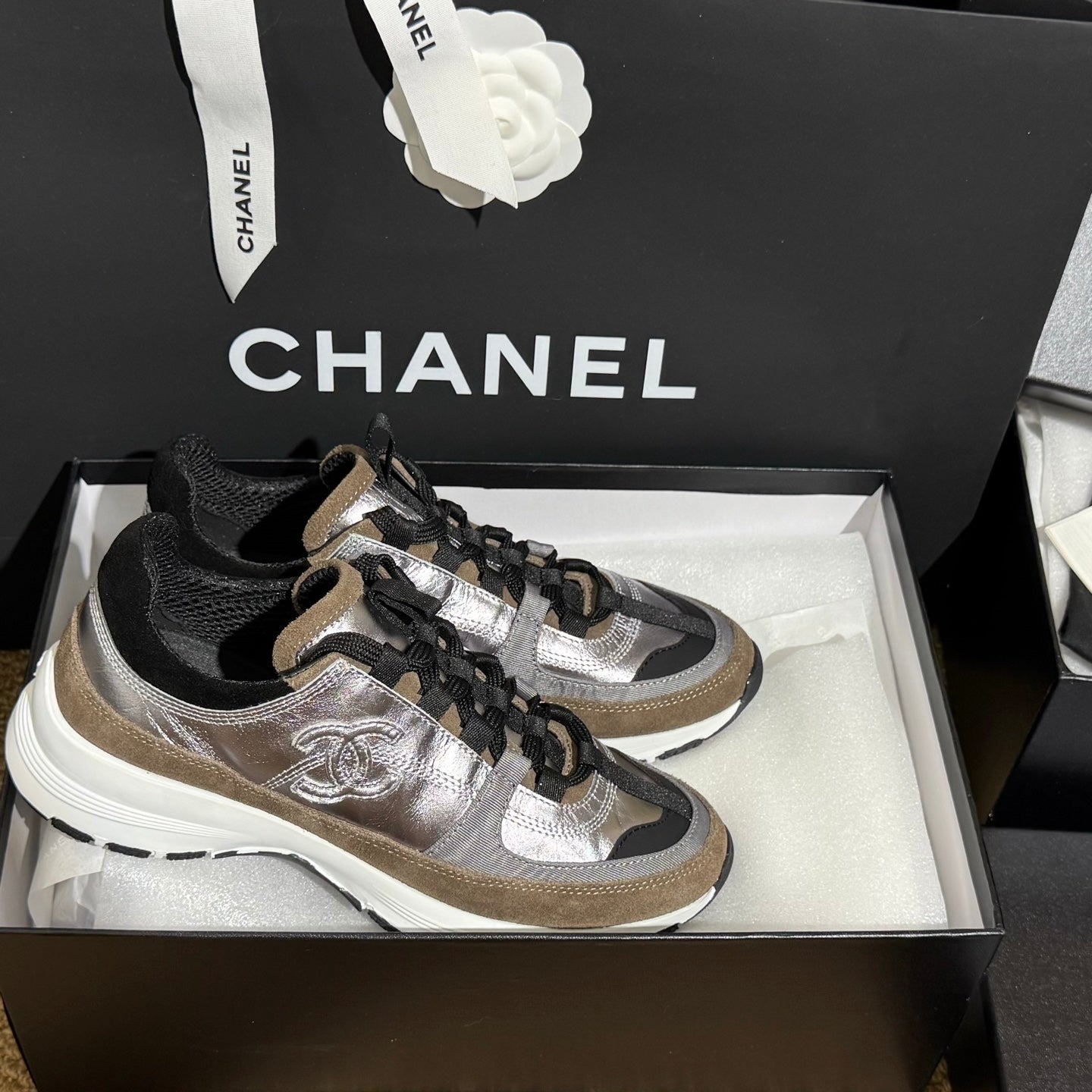 CC 25A Trainers Silver Black Brown Laminated Calfskin And Suede Calfskin352118