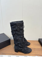 CC 25b Camellia Flower Long Boots 40mm Black Mesh & Frabic 429750