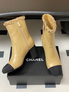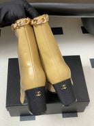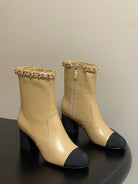 CC 25B Chain Short Boot 70mm Black Beige Denim Cowhide 423147