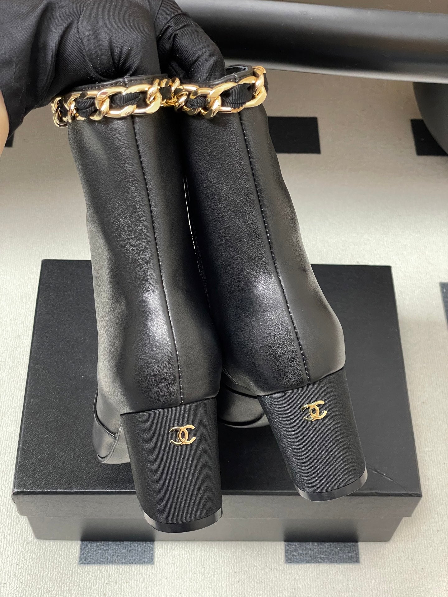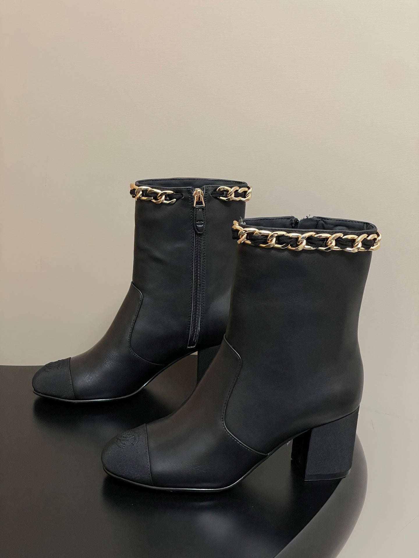 CC 25B Chain Short Boot 70mm Black Denim Cowhide 423149