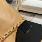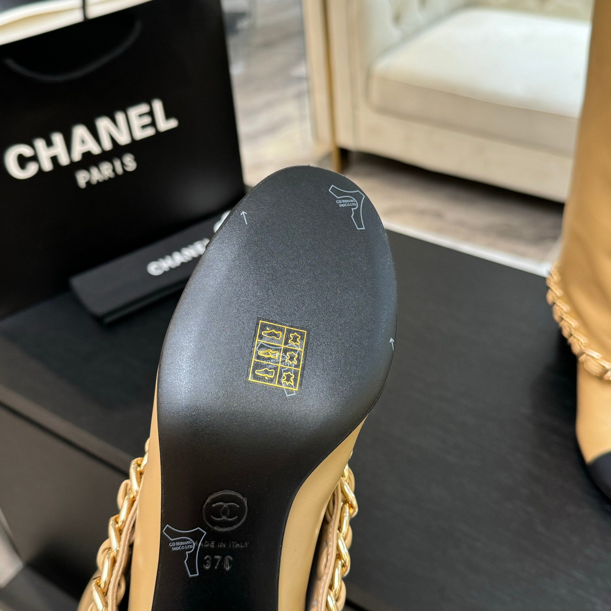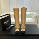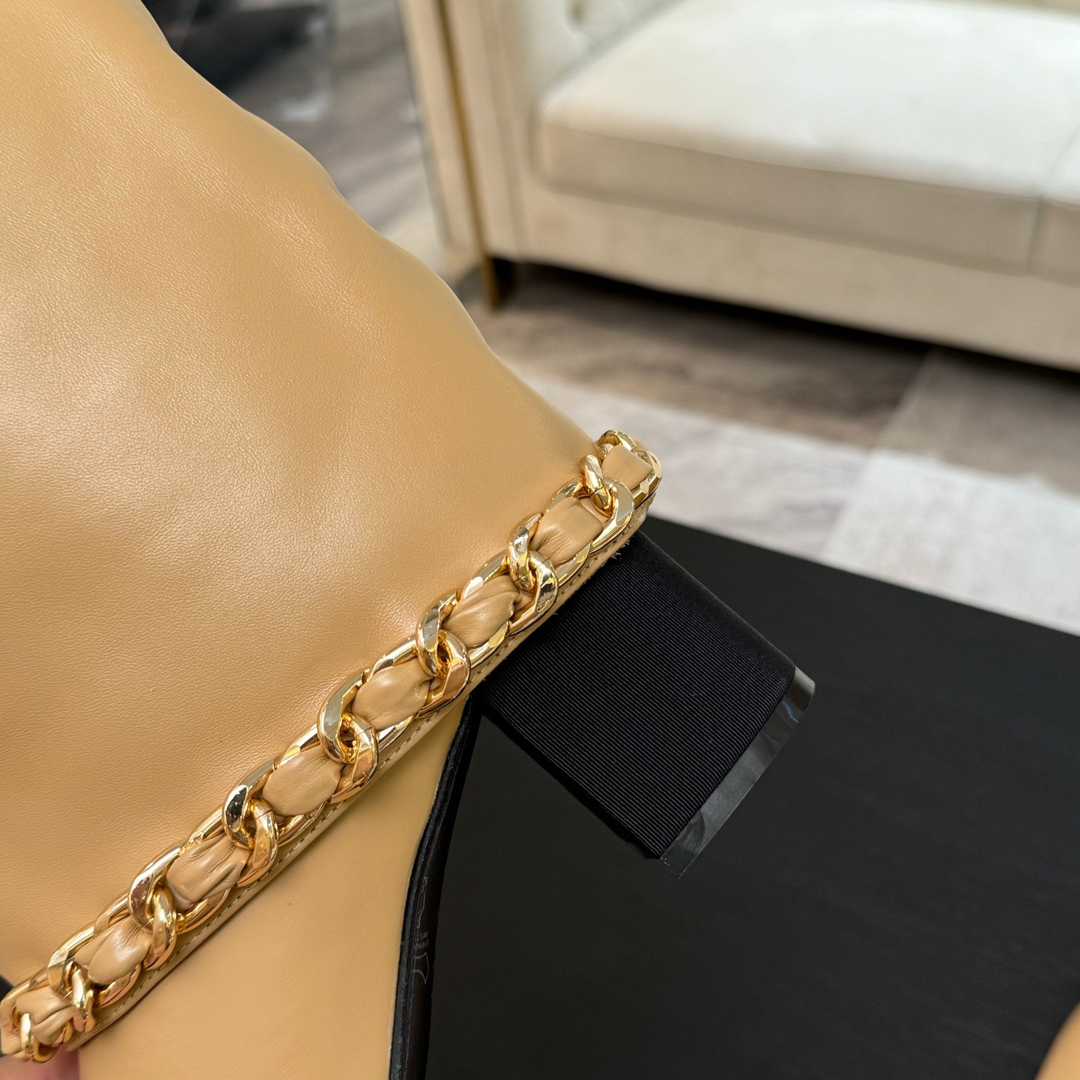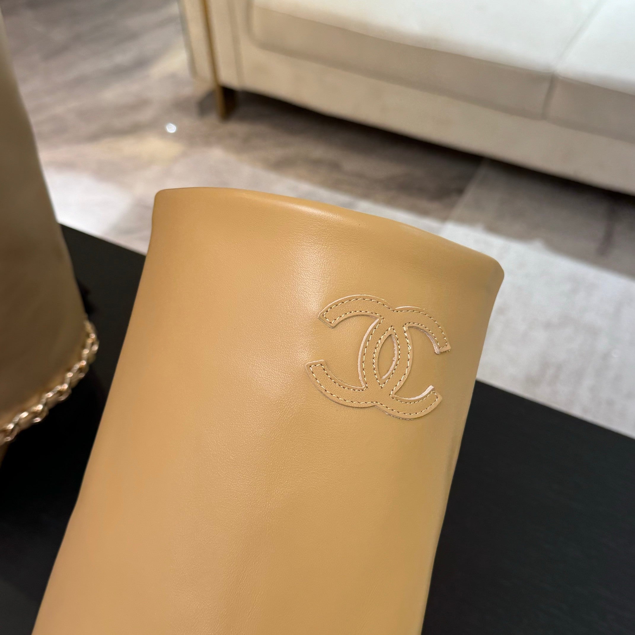 CC 25B High Boots Beige Sheepskin With Chain Black Grosgrain 373809