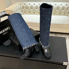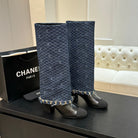 CC 25B High Boots Navy Blue Denim With Chain Black Grosgrain 373807