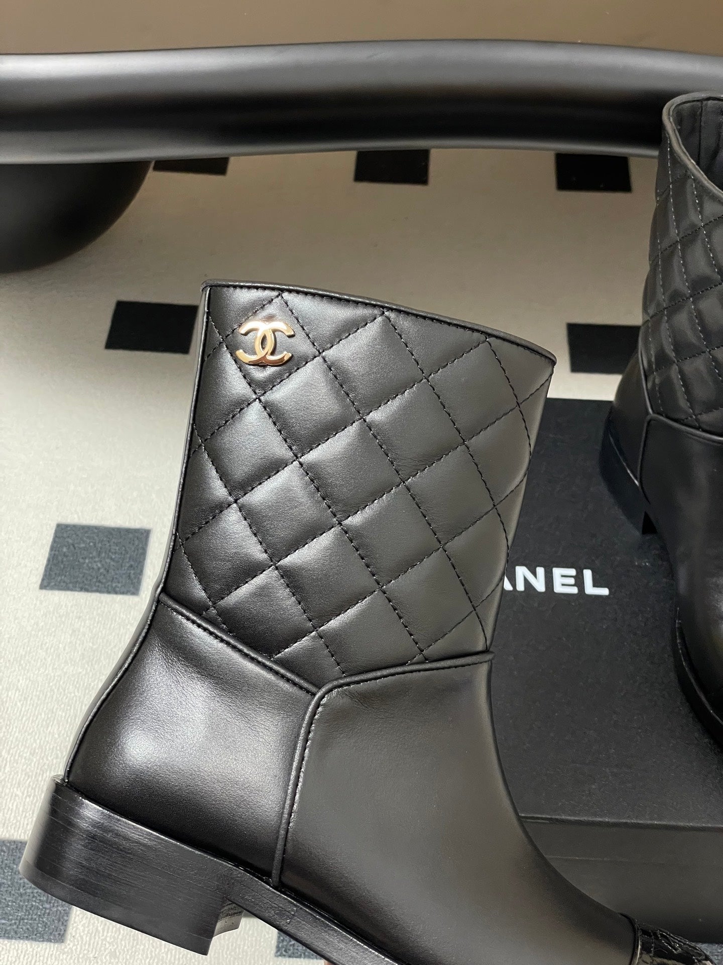 CC 25FW Double C Buckle Short Boot 25mm Black Sheepskin 423144