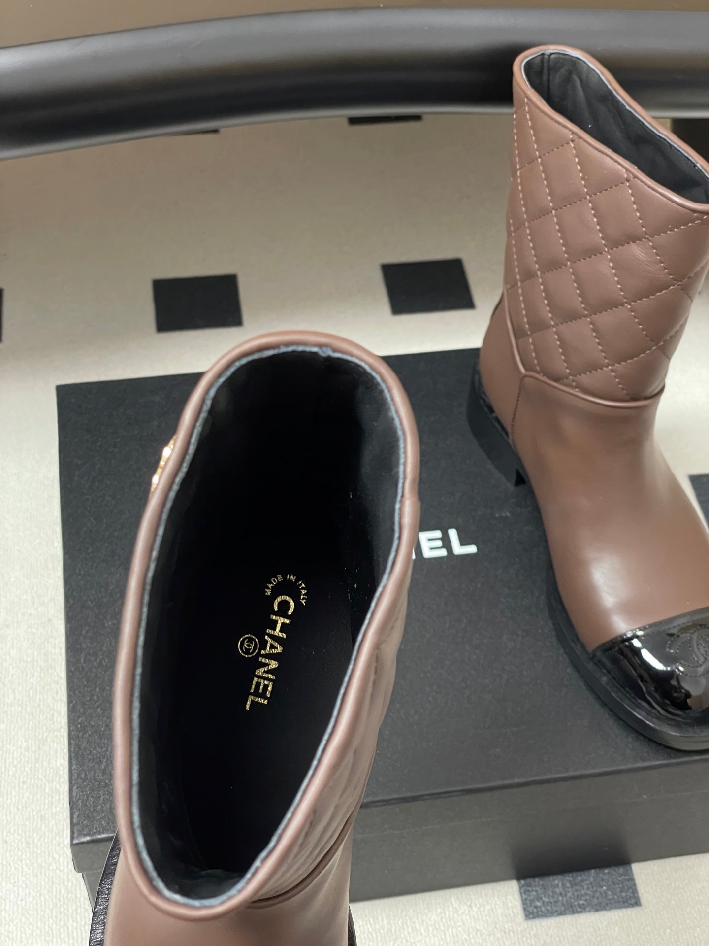 CC 25FW Double C Buckle Short Boot 25mm Brown Black Sheepskin 423143