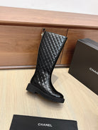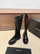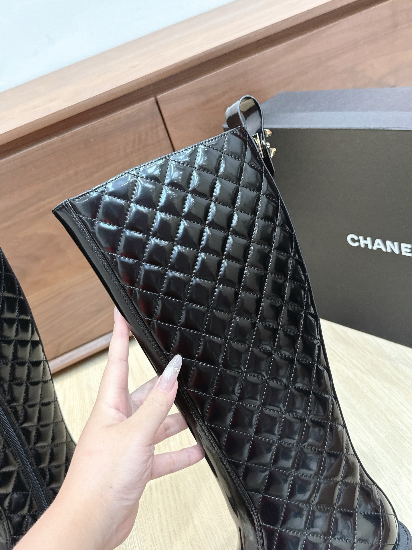 CC 25s Knight Long Boots 50mm Black Quilted Patent Leather 461562