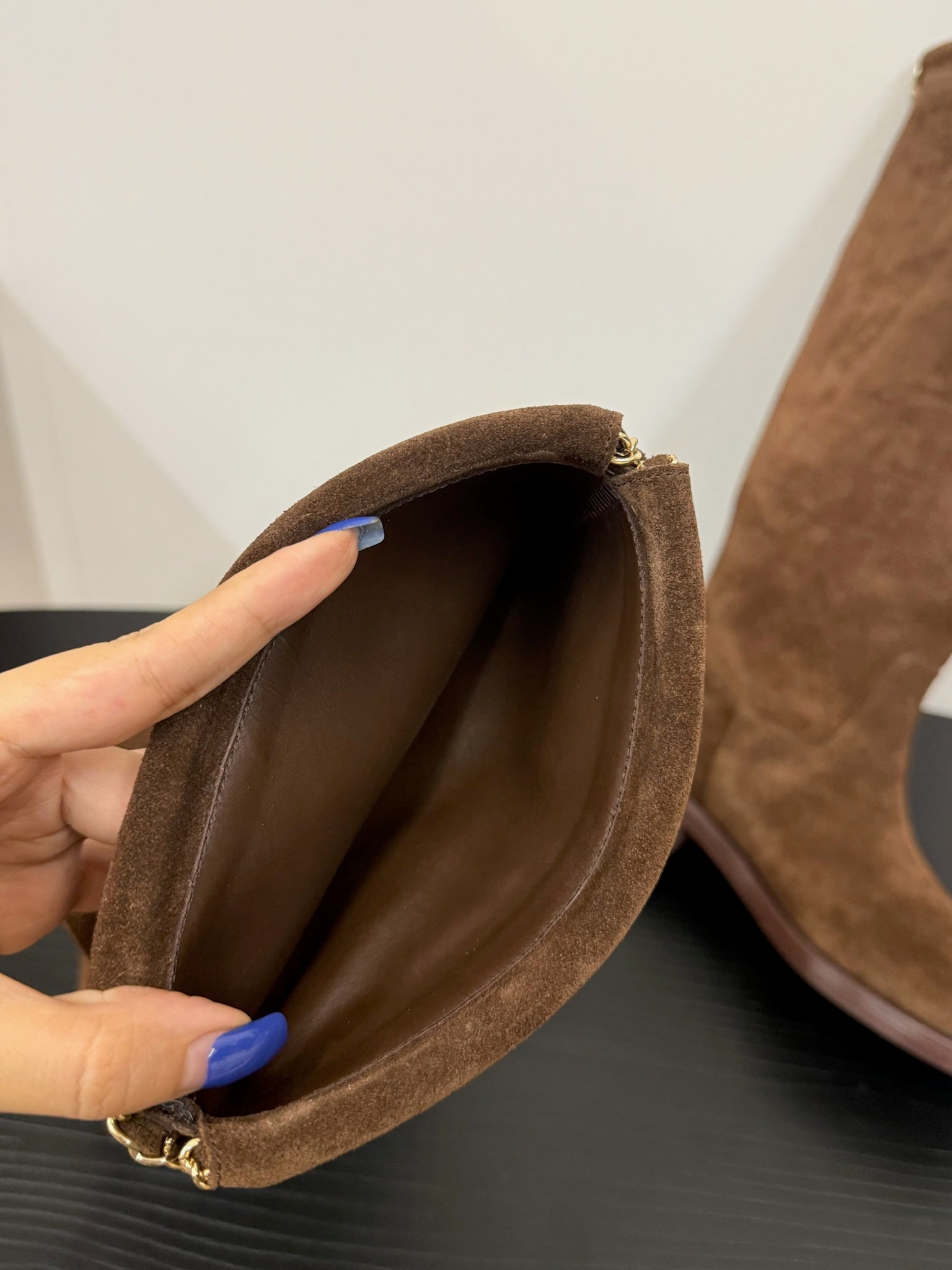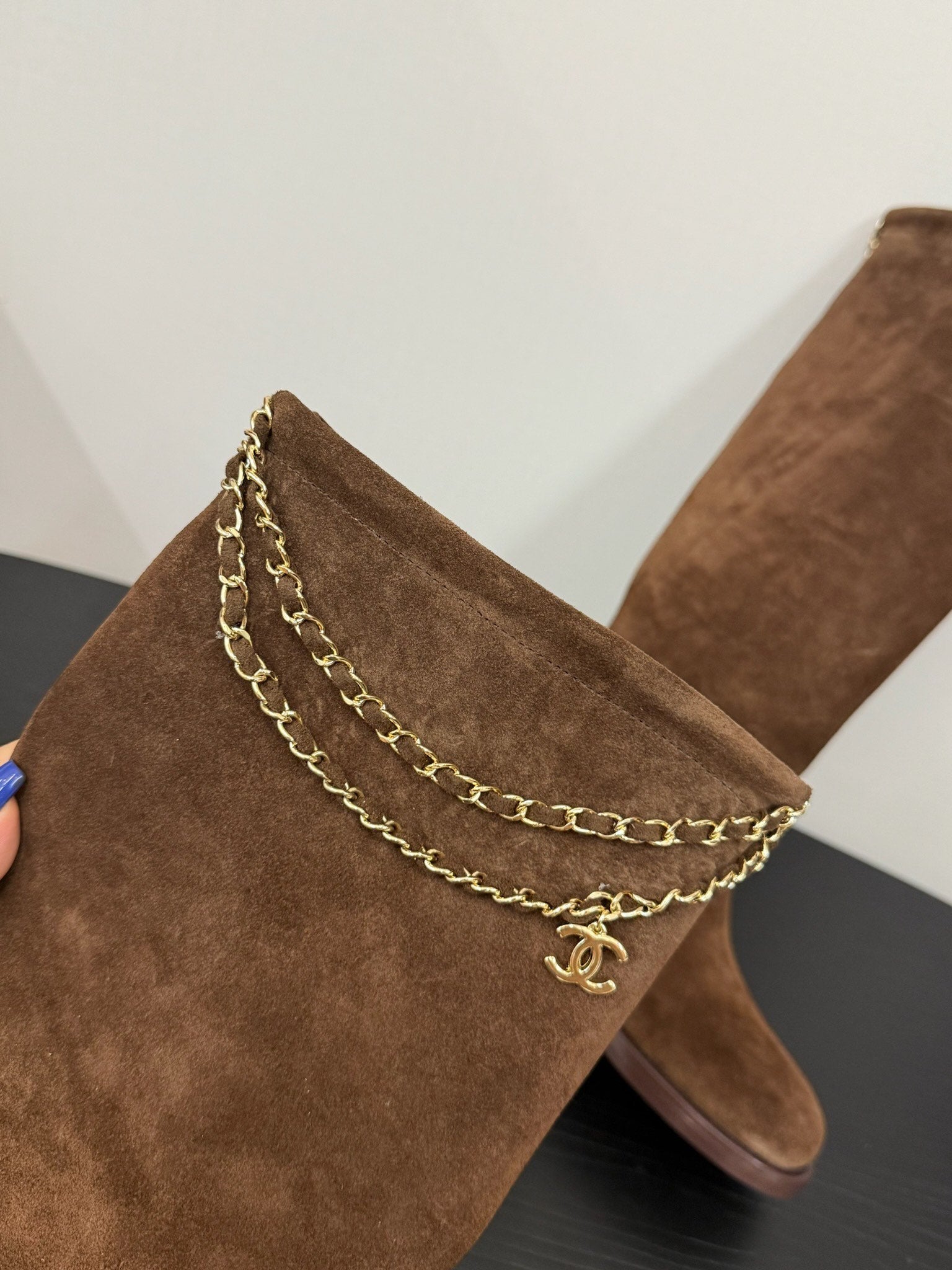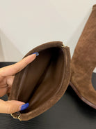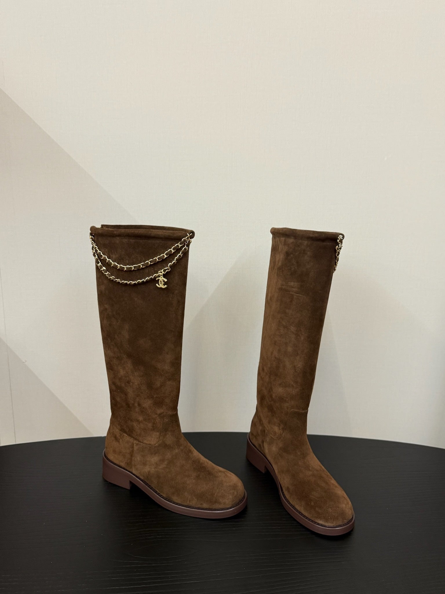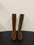 CC 25s Long Flat Chain Knight Boots Brown Cow Suede&Sheeepskin 417842