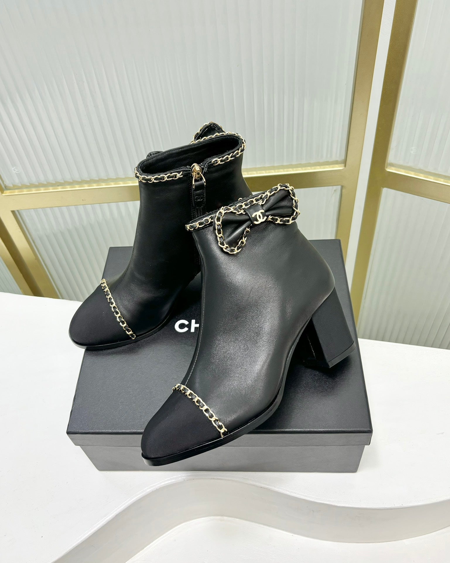 CC Ankle Boot 65 Black Calfkin Grosgrain Leather Strap