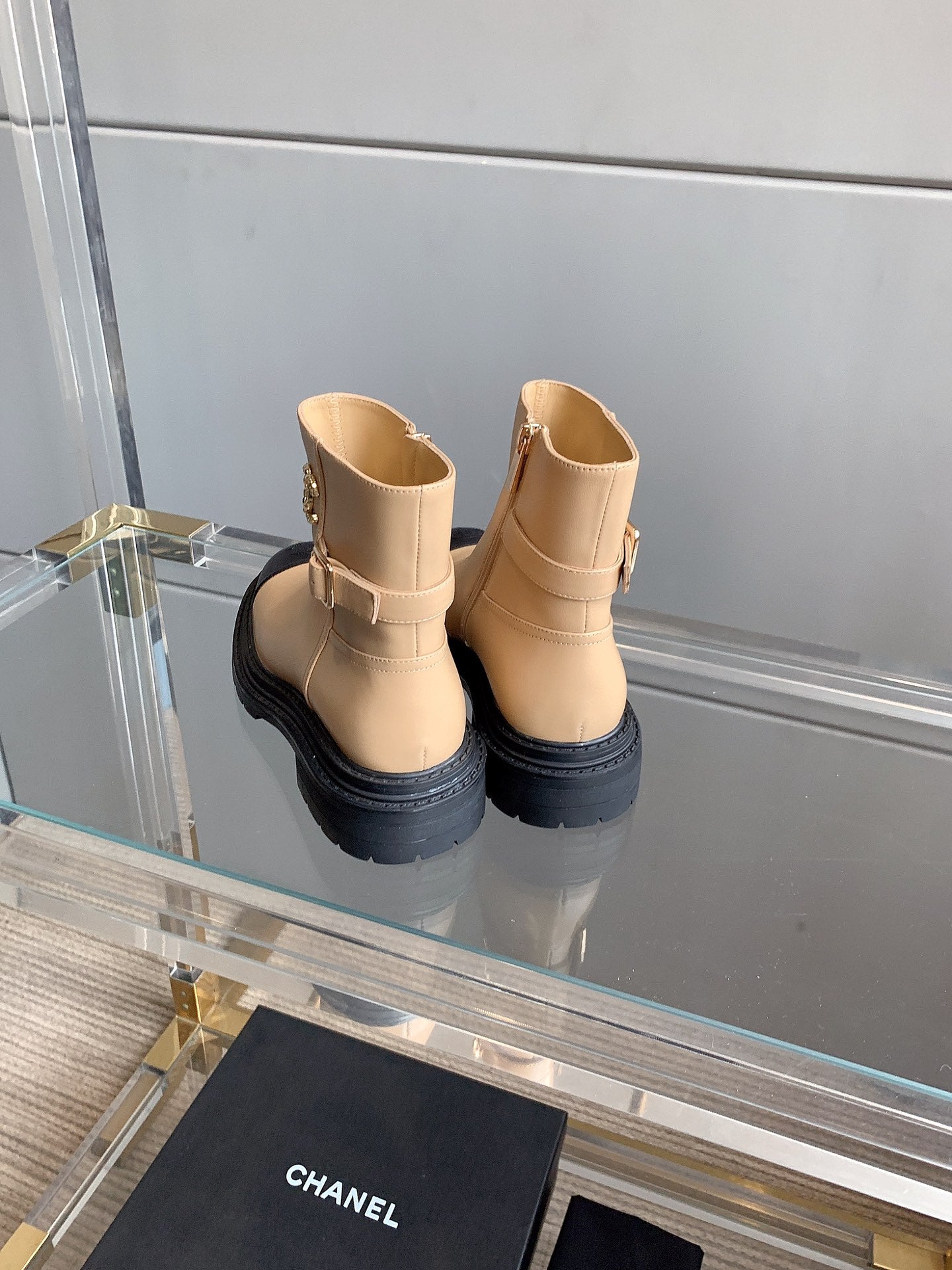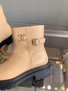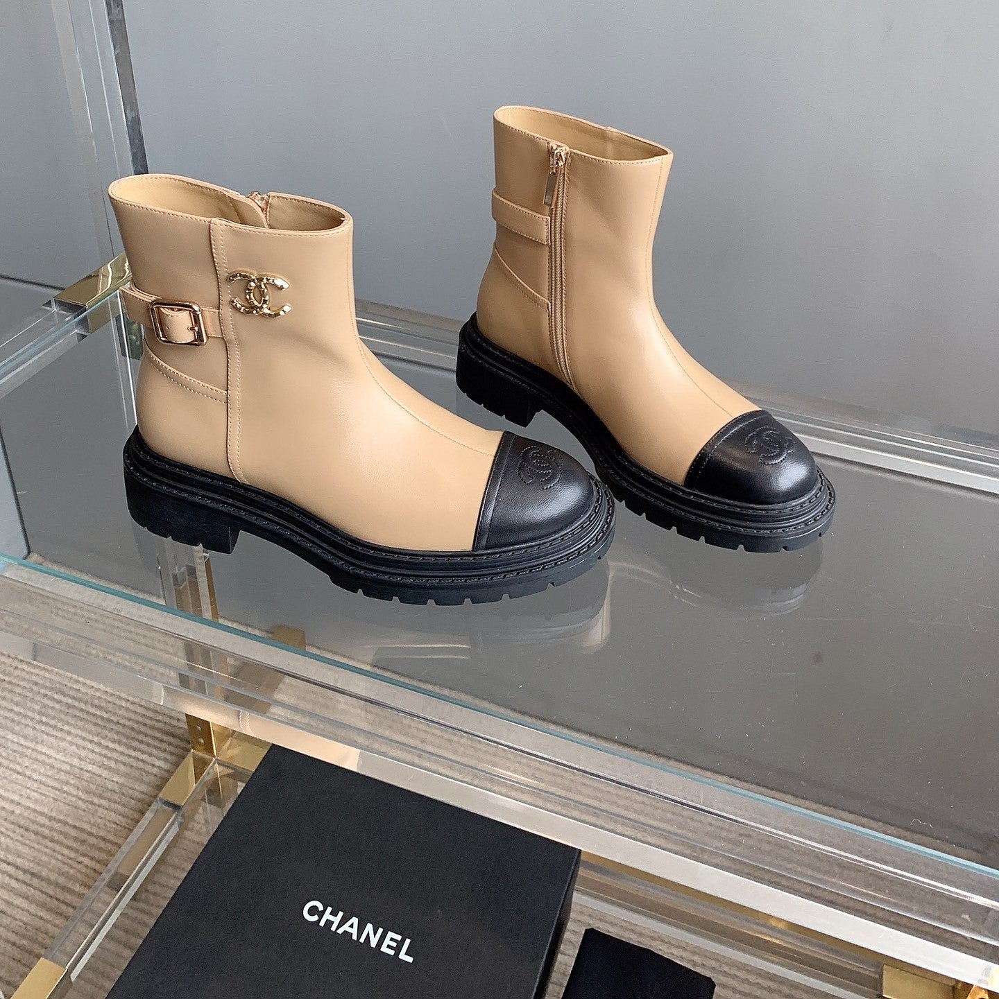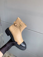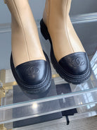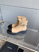CC Cap Toe Ankle Boots Black Beige Cowhide 464571