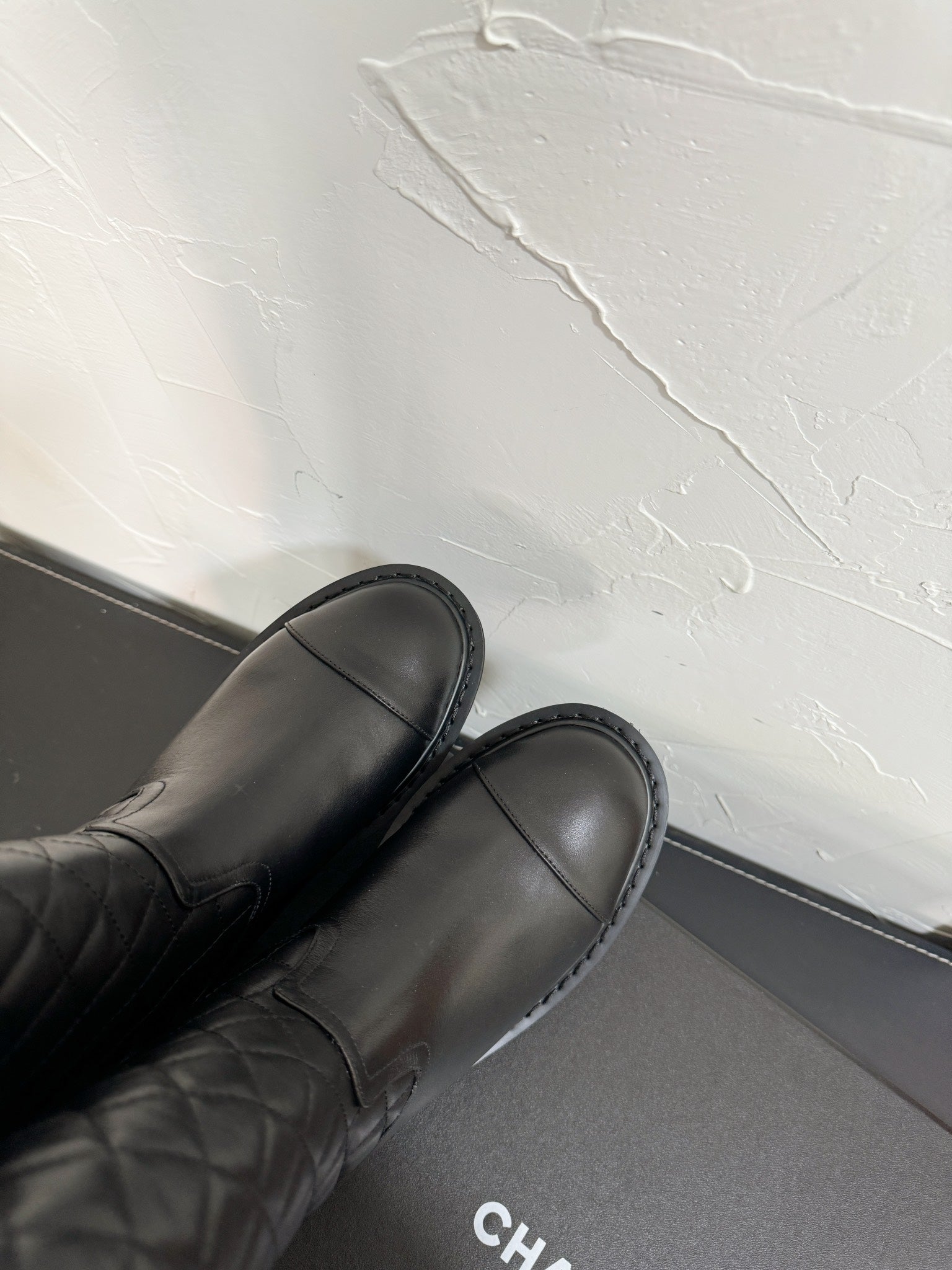 CC High Boots 40mm In Plain Black Mix Glossy Black Quilted Calfskin 949749