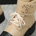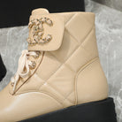 CC Interlocking Logo Combat Boots Black Beige Quilted Lambskin 432653