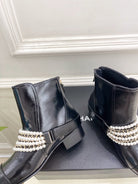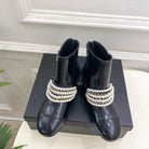 CC Pearl Chain Ankle Boots Booties 35mm Black Calfskin 425463