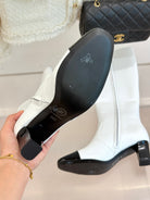 Chanel Double C Colorblock Heel Long Boot Black Sheepskin 465417
