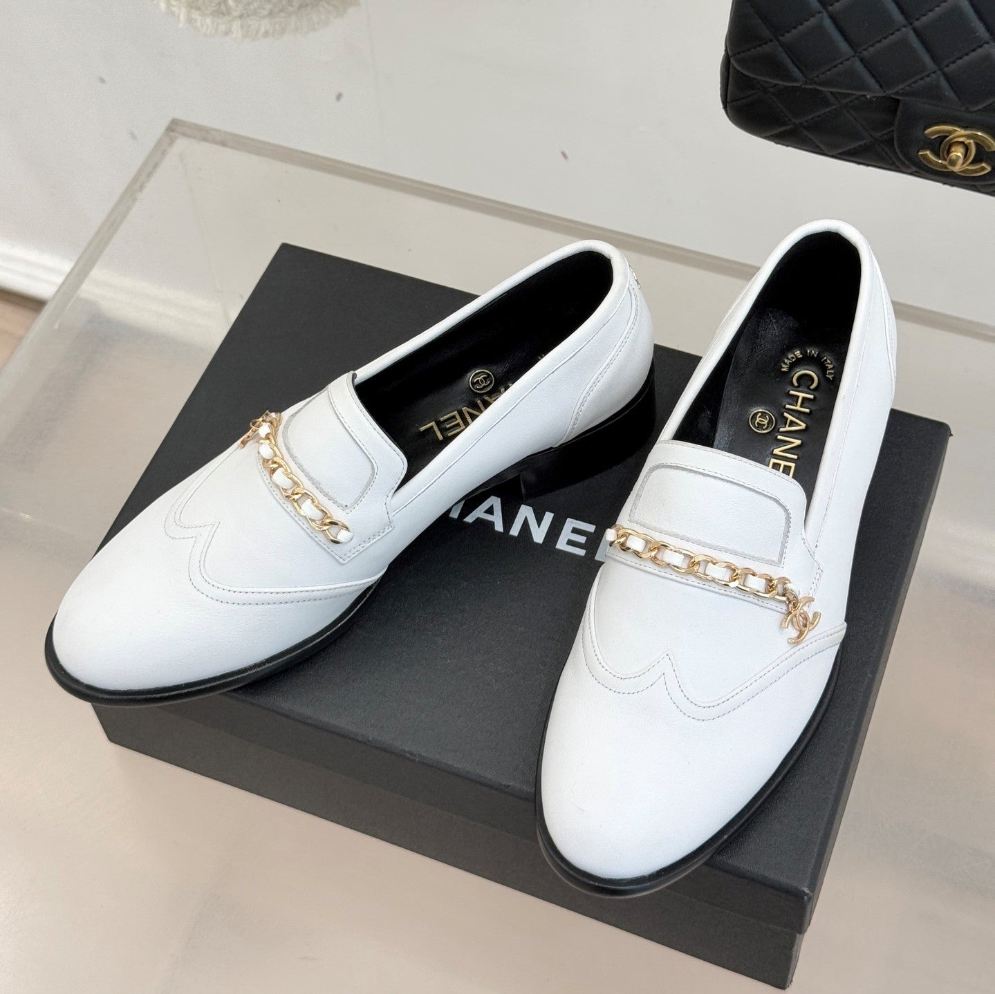 CC 25s Double C Buckle Loafers White Calfskin 557703