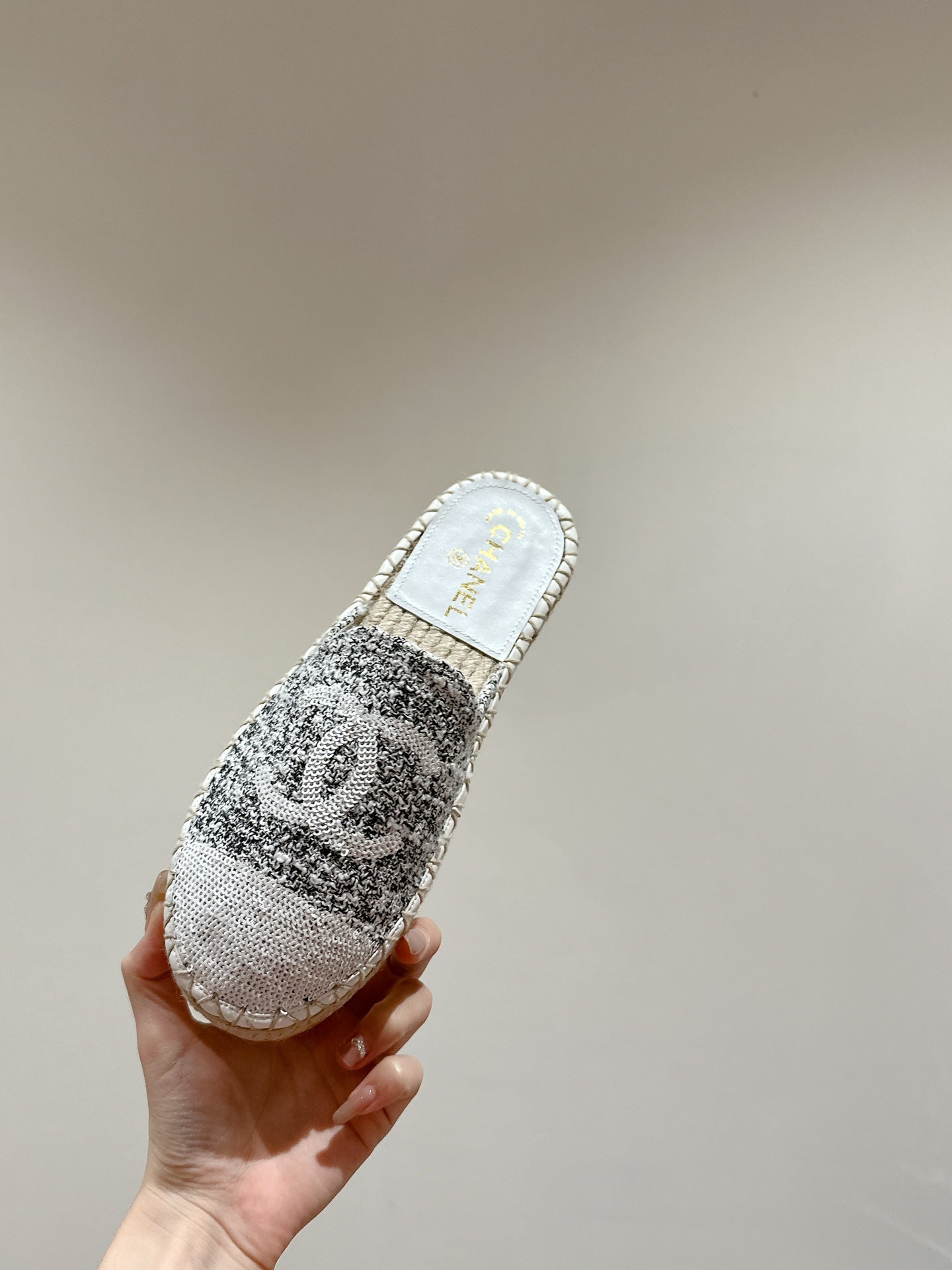 cc espadrilles mule grey fabric white sequin
