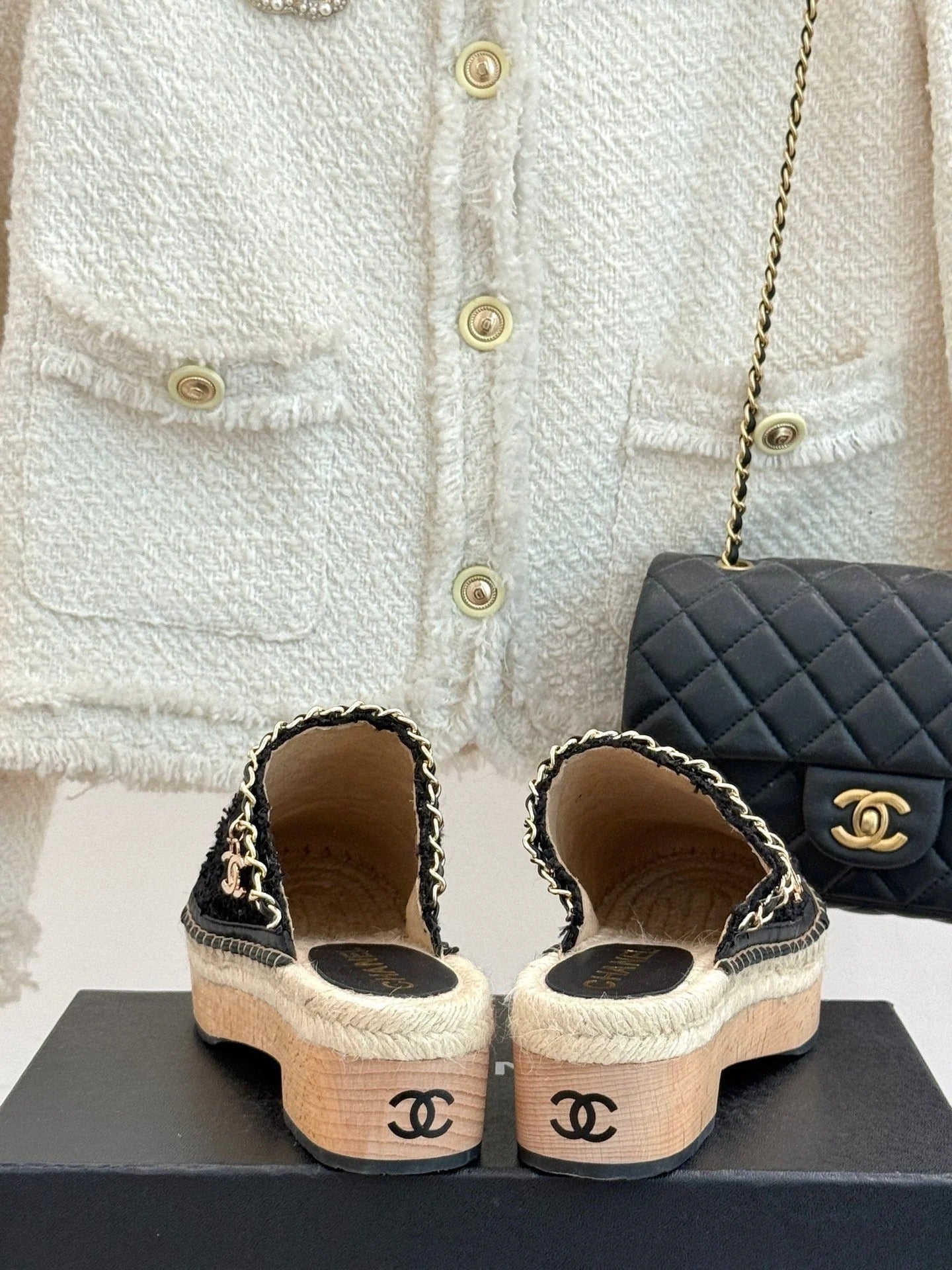 CC Mules 25ss 30 Mm In Black Lambskin Mix Tweed