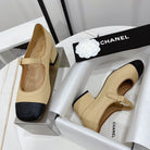 CC MARY JANE BLOCK HEEL BEIGE CREAM SHEEPSKIN
