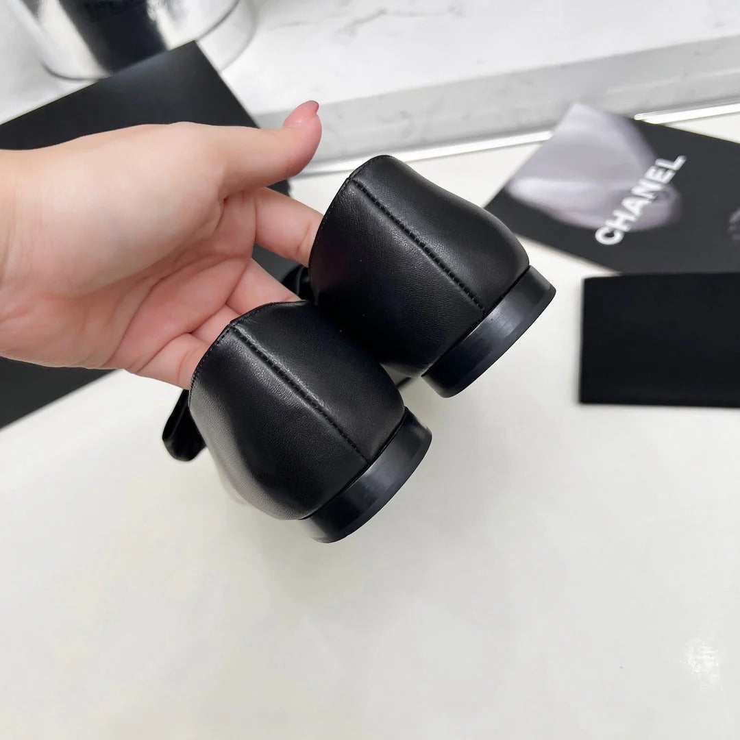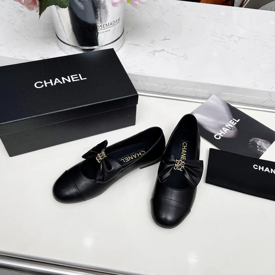 CHANEL 25S MARY JANES IN BLACK CALFSKIN WITH BOW GOLD HARDWRE