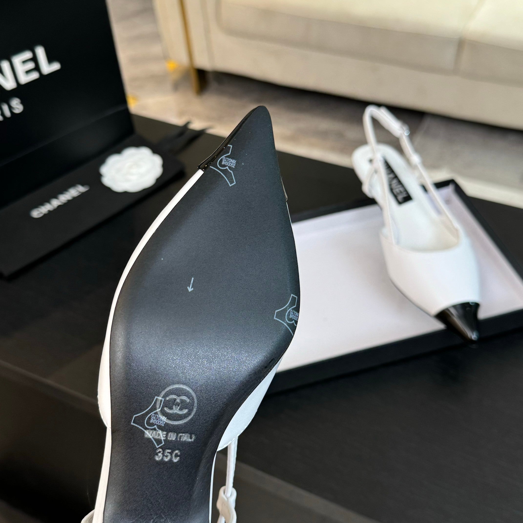 CC 24P SLINGBACKS 95MM WHITE BLACK LAMBSKIN