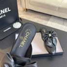 BIG BOW FLAT MULE SANDALS IN BLACK LAMBSKIN