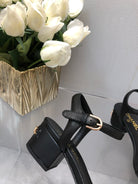 BLOCK HEEL 5 CM SANDAL IN BLACK LAMBSKIN