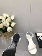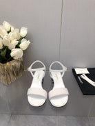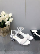 BLOCK HEEL WITH CRYSTAL 5 CM SANDAL IN WHITE FABRIC