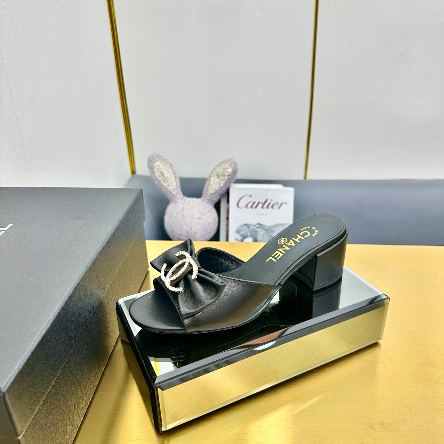 cc 25 bow mule sandal 50mm black sheepskin 238478