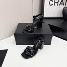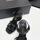 CC 25 Camellia Open Heel Sandals 90mm Black Sheepskin 368820